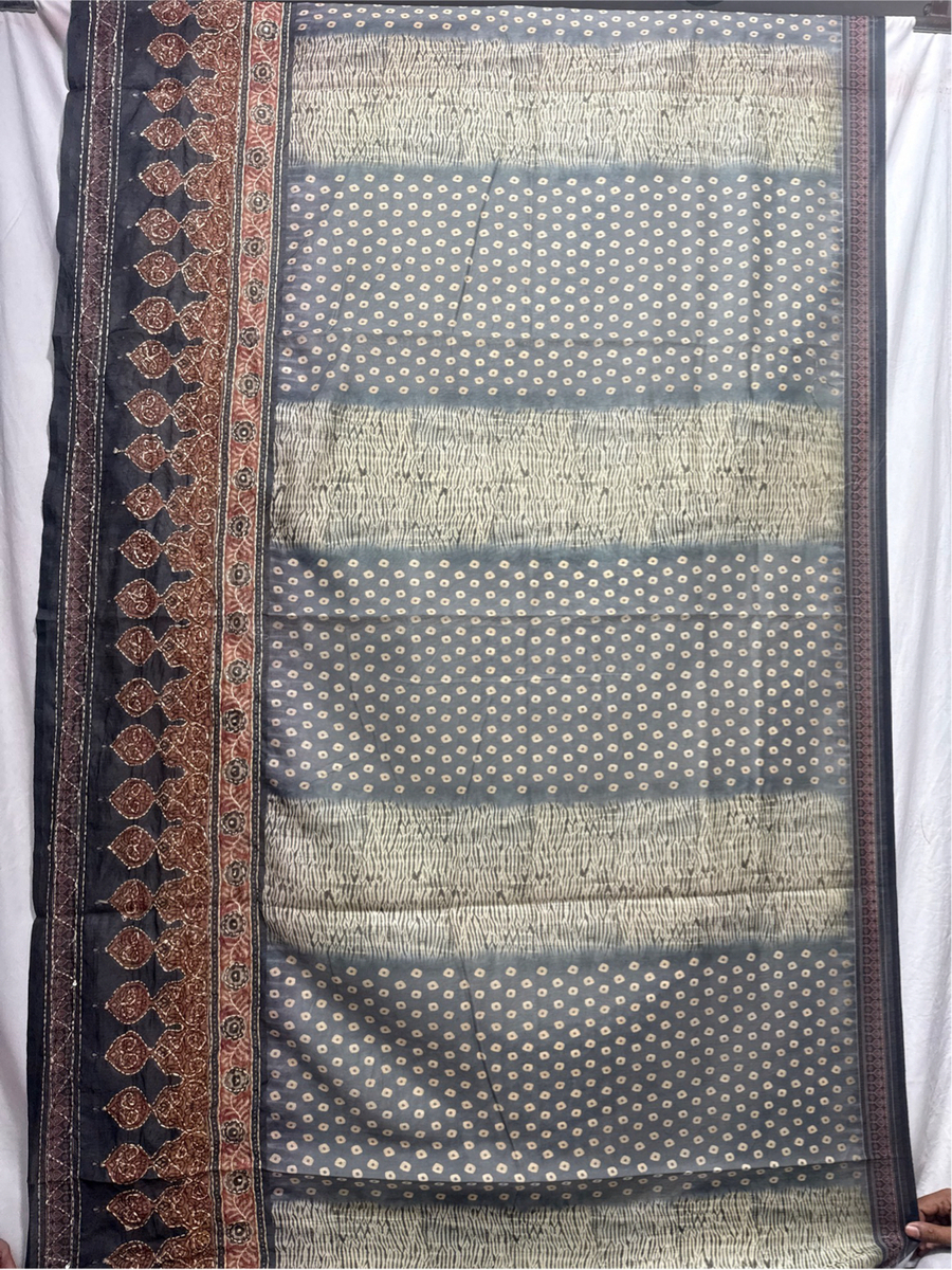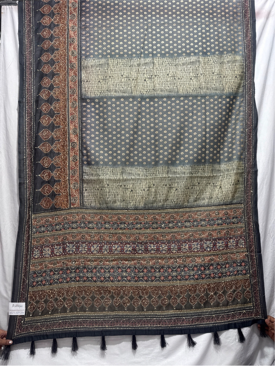 - Color & Work: Light Dark Grey design embellished with Hand Made Bandhani, highlighting artisanal craftsmanship.