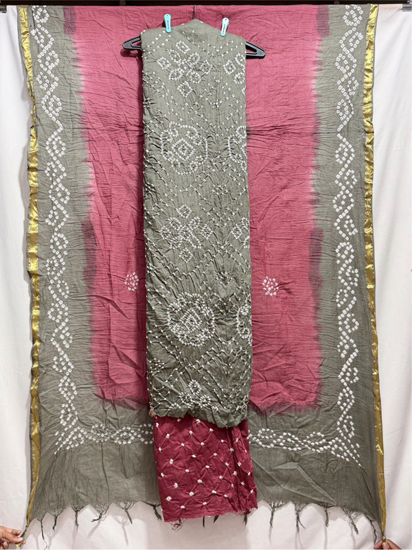 Kala Sanskruti Grey & Gajri Color Heavy Cotton Satin Bandhani Dress 2.5 M (Each Piece) Elegant Traditional Wear Dress Material for Women