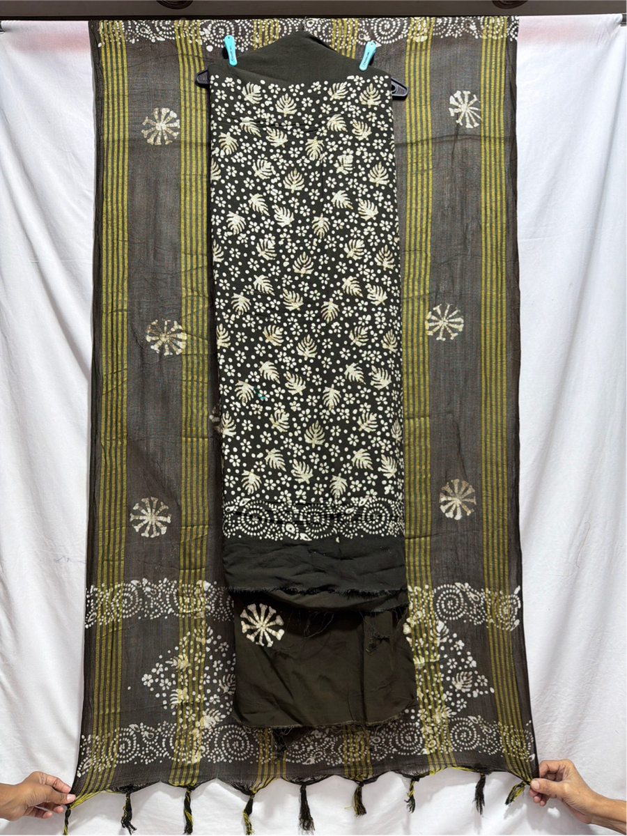 Kala Sanskruti All over Mahendi Colour Heavy Cotton Satin Printed Dress 2.5 M (Each Piece) Elegant Traditional Wear Dress Material for Women