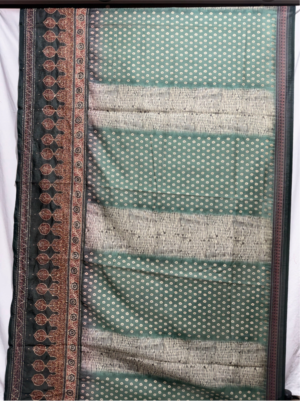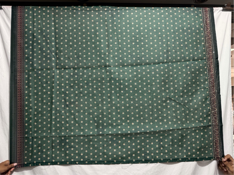 - Design: Light Dark Green Hand Made Bandhani motifs across the body.