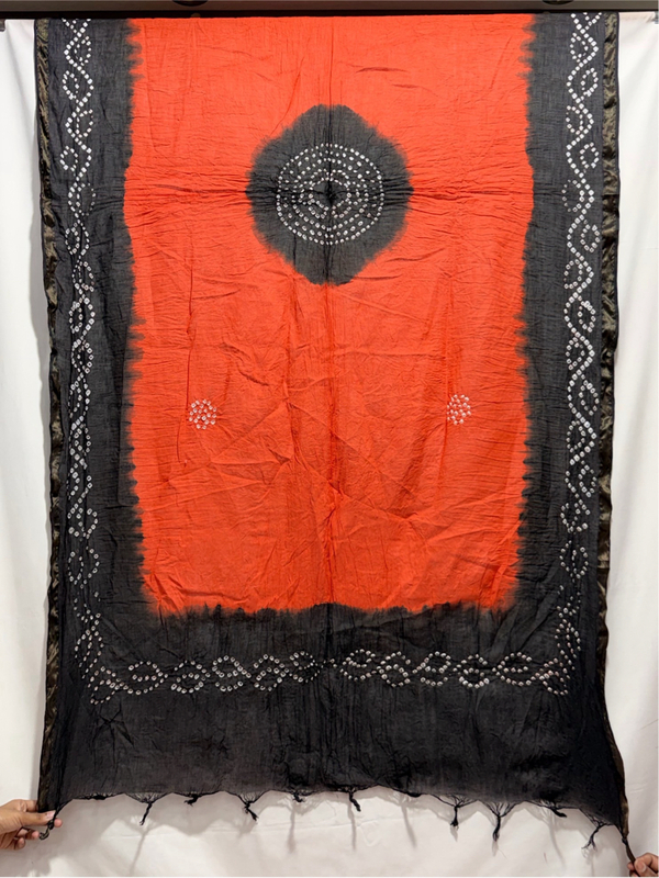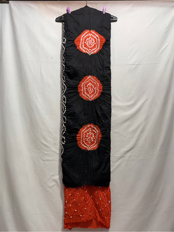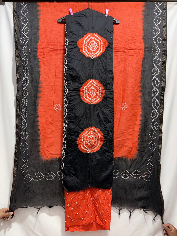 Kala Sanskruti Orenge & Black Color Heavy Cotton Satin Bandhani Dress 2.5 M (Each Piece) Elegant Traditional Wear Dress Material for Women