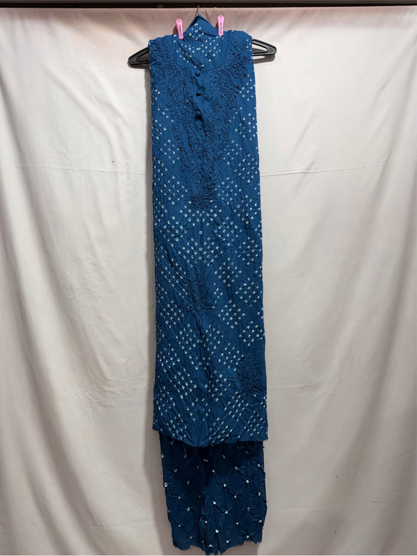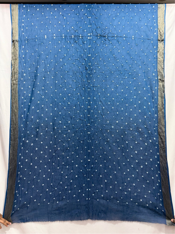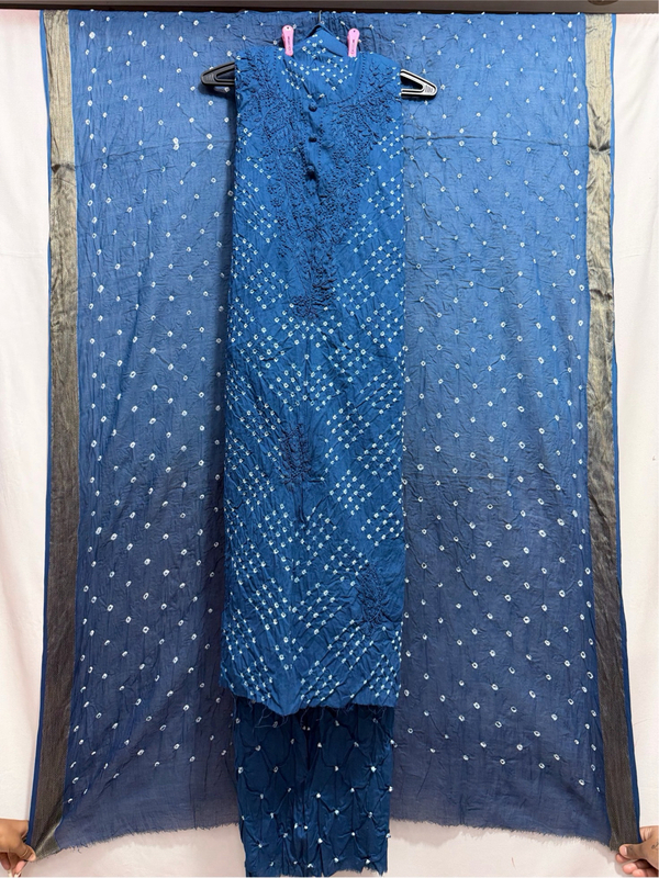 Kala Sanskruti Light Dark Indigo Color Heavy Cotton Satin Bandhani Dress With Work 2.5 M (Each Piece) Elegant Traditional Wear Dress Material for Women