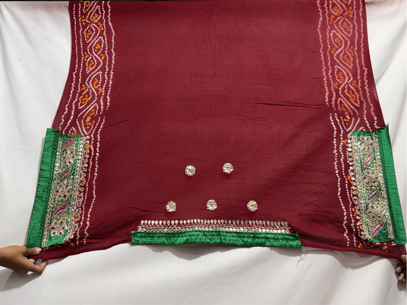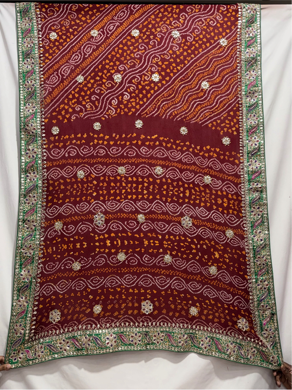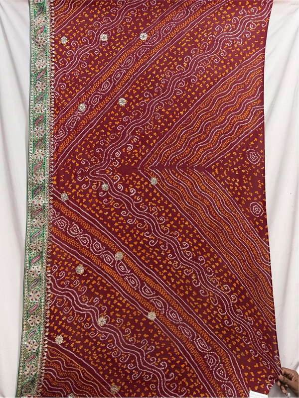 Kala Sanskruti All Over Maroon Color Pure Creap Bandhani Saree With Hand Work 6.5M Elegant Traditional Wear Graceful Handcrafted Artistry For Woman