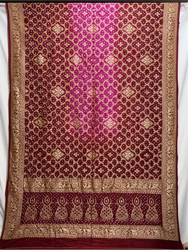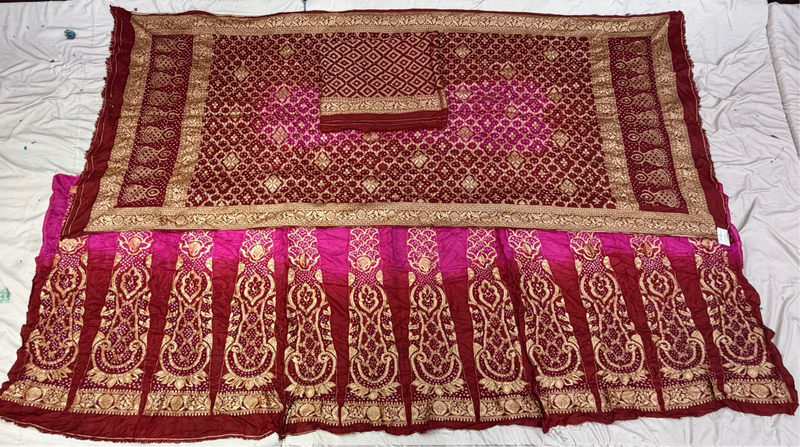 Kala Sanskruti Maroon & Pink Colour Dupion Silk Bandhani Chaniyacholi 3.75M - Elegant Traditional Wear Dupion Chaniyacholi's for Women