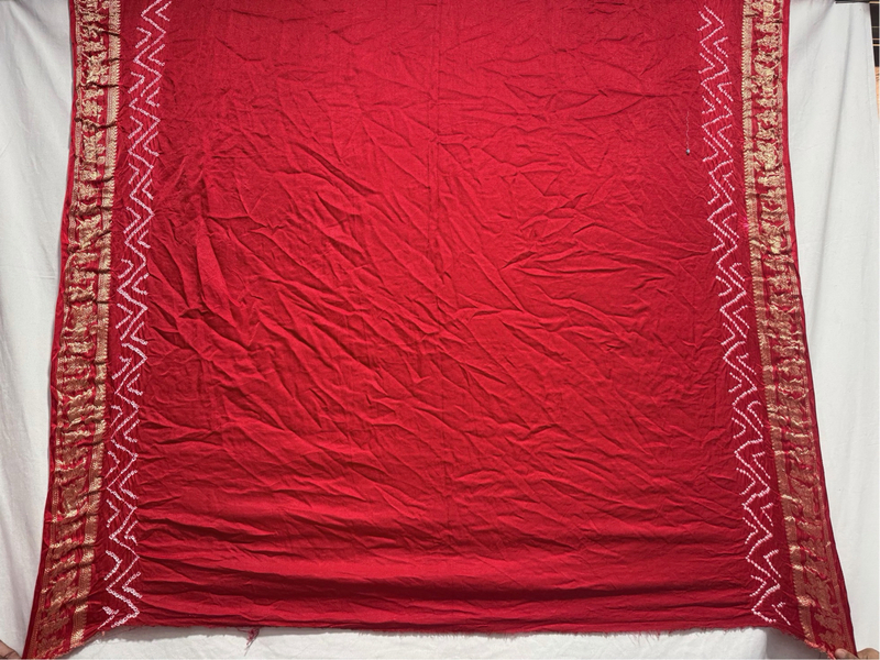 Material: Premium Pure Gaji Silk with authentic Bandhani craftsmanship. Color & Design: All Over Red traditional Bandhani pattern. Size & Length: 6.5m with blouse piece – elegant traditional wear saree for women. Occasion: Suitable for festive, traditional, and daily ethnic wear. Features: - Soft feel - Elegant drape - Durable quality - Easy maintenance Made in India: Handcrafted by skilled artisans.