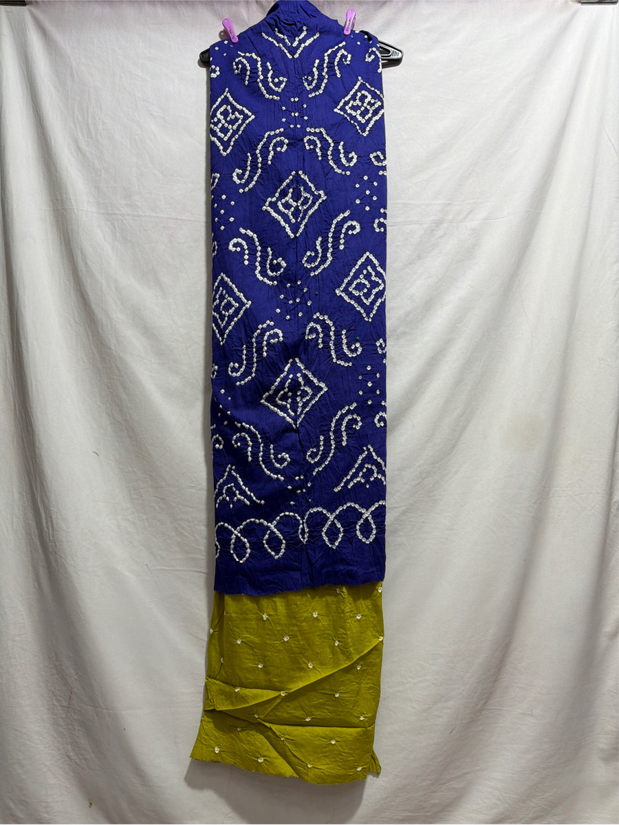 Kala Sanskruti Blue & Mahendi Color Heavy Cotton Satin Bandhani Dress 2.5 M (Each Piece) Elegant Traditional Wear Dress Material for Women