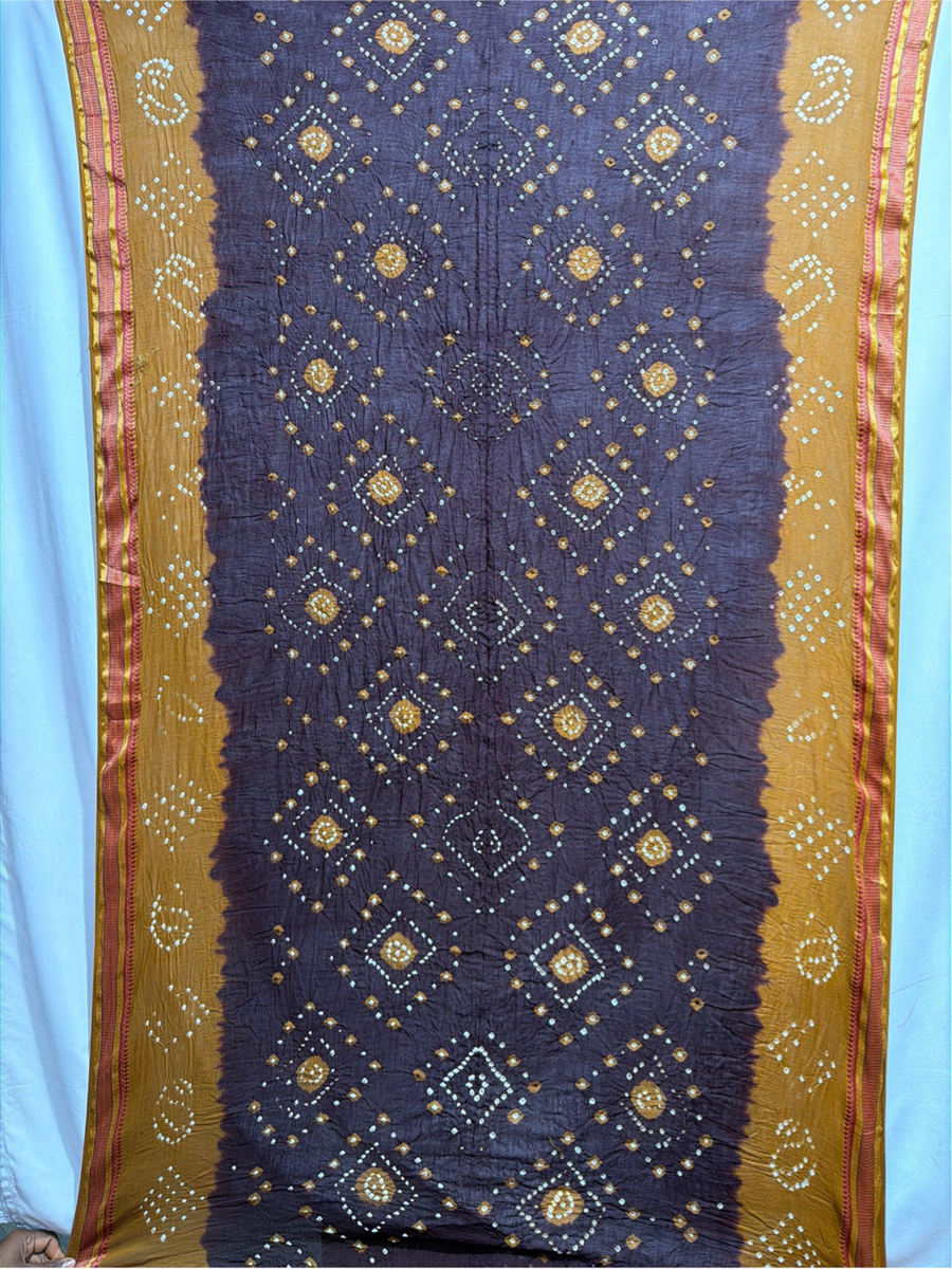 Kala Sanskruti Chocolate & Coffee Color Cotton Bandhani Saree 6.5M with Blouse Piece Elegant Traditional Wear Saree for Women