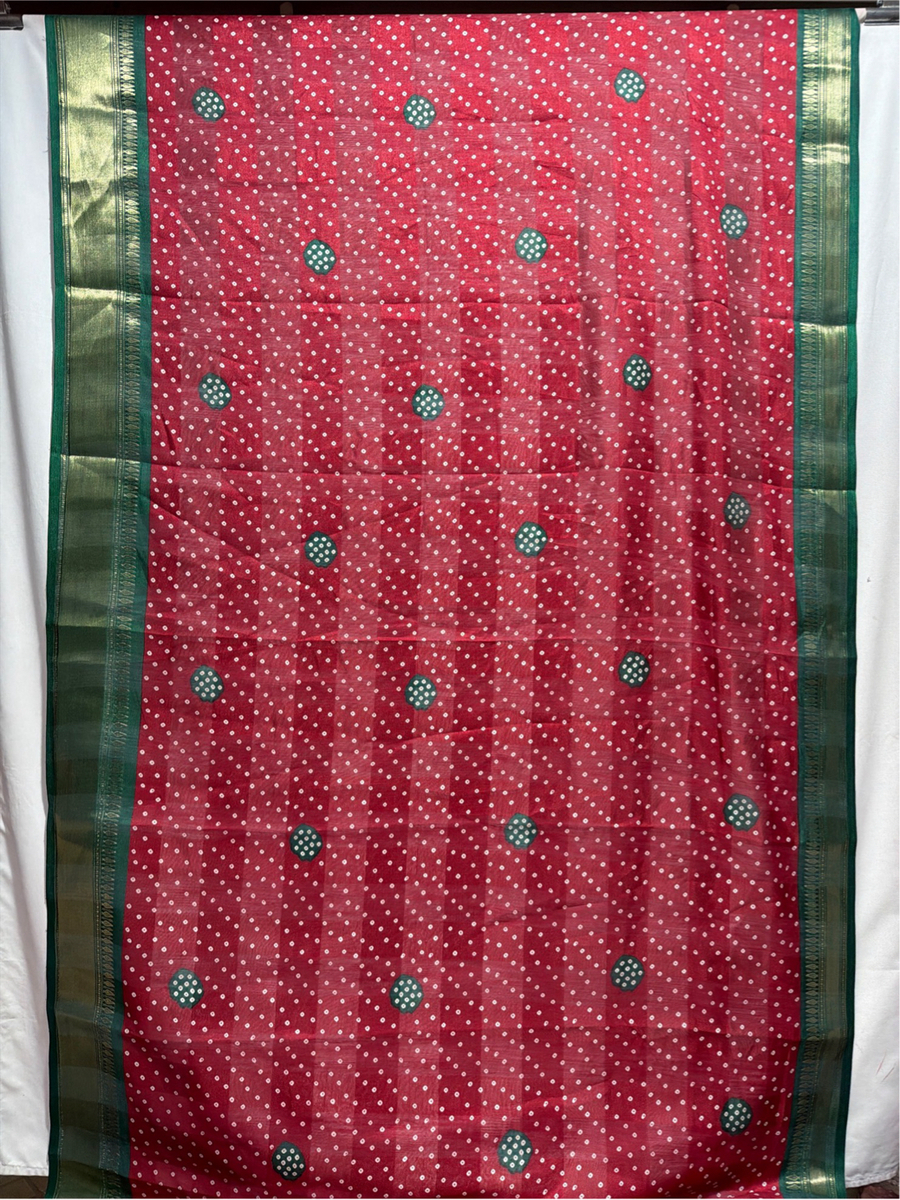 Kala Sanskruti Red & Green Color Art Silk Printed Saree 6.5M with Blouse Piece Elegant Traditional Wear Saree for Women