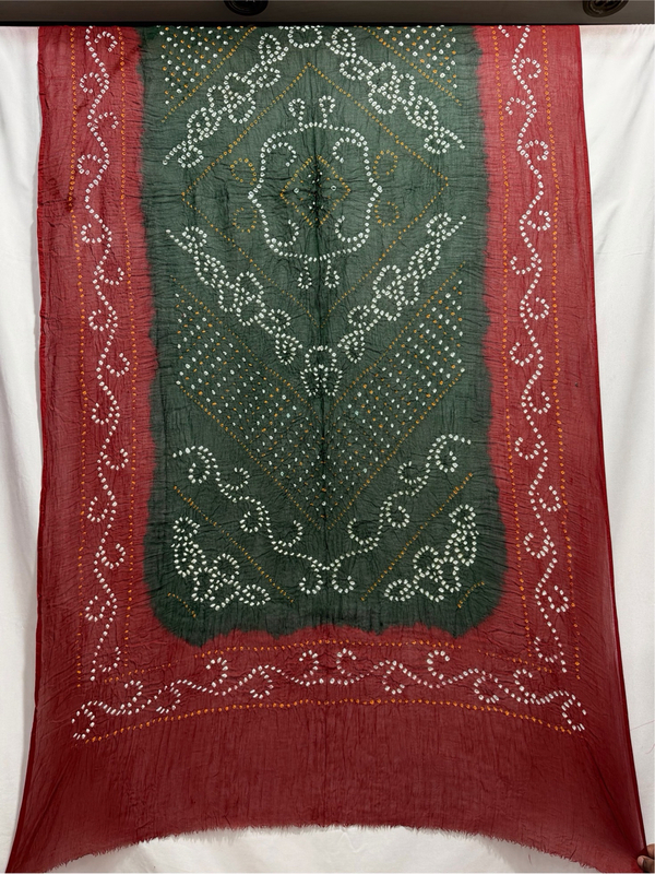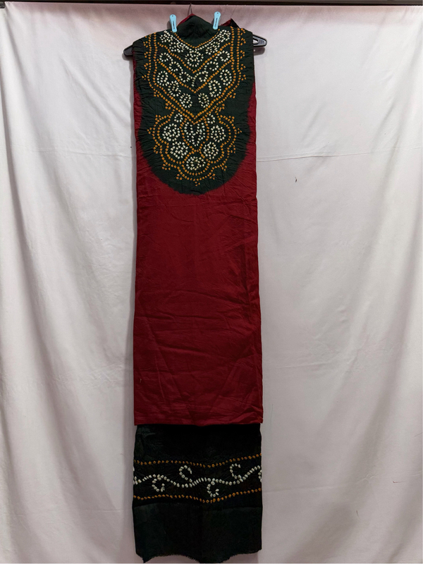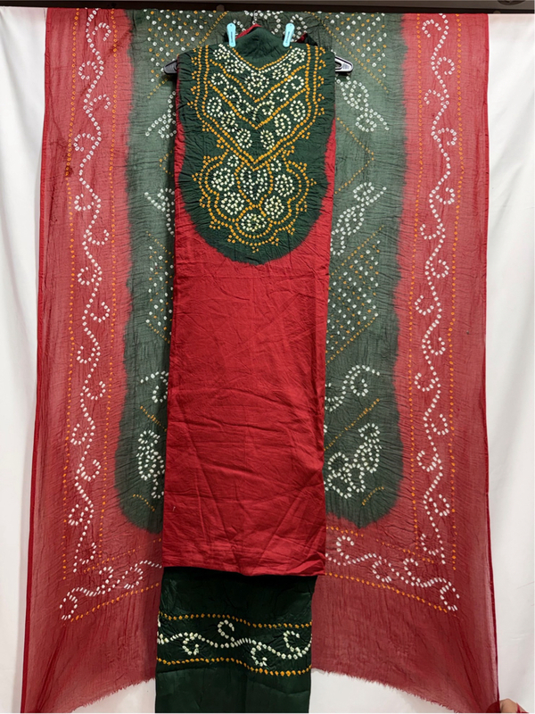 Kala Sanskruti Red & Green Color Heavy Cotton Satin Bandhani Dress 2.5 M (Each Piece) Elegant Traditional Wear Dress Material for Women