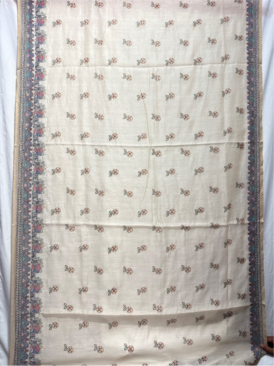- Color & Work: All Over Cream design embellished with Hand Made Bandhani, highlighting artisanal craftsmanship.