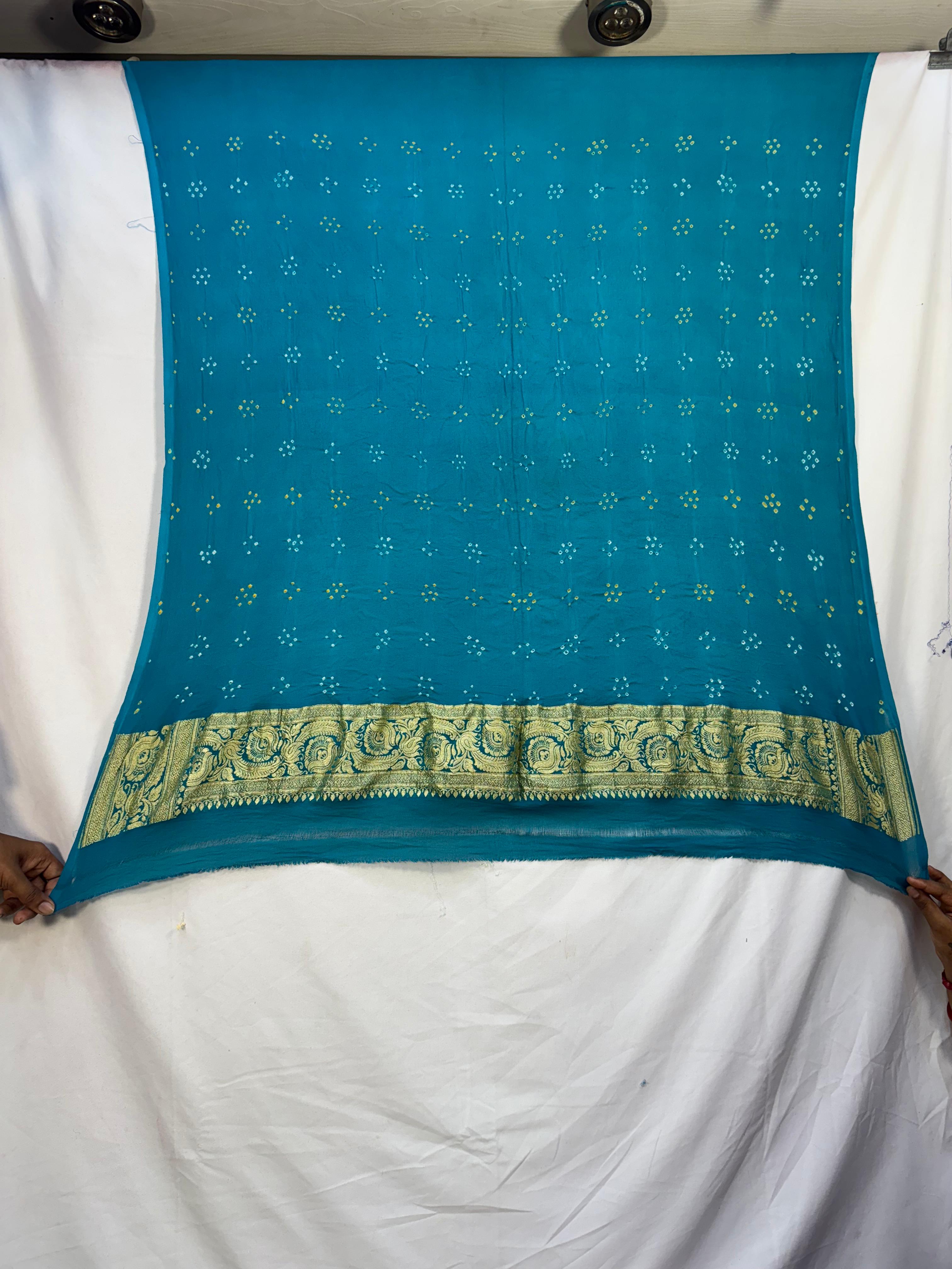Material: Made from premium Banarasi Georgette fabric with traditional Bandhani work, offering elegance, comfort, and cultural richness.