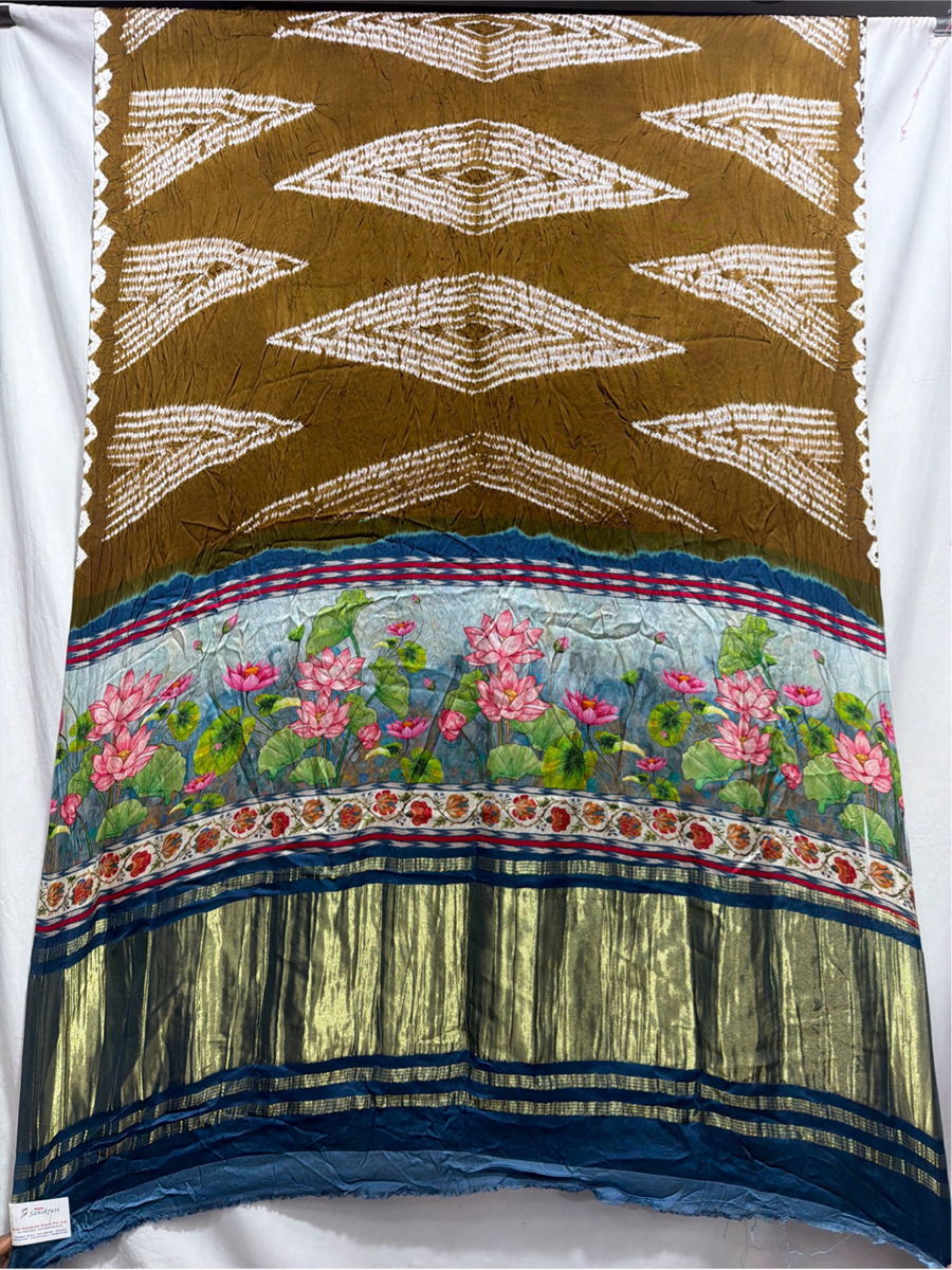 Kala Sanskruti Dark Chocolate & Indigo Color Art Silk Bandhani Saree 6.5M with Blouse Piece Elegant Traditional Wear Bridal Unique Saree for Women