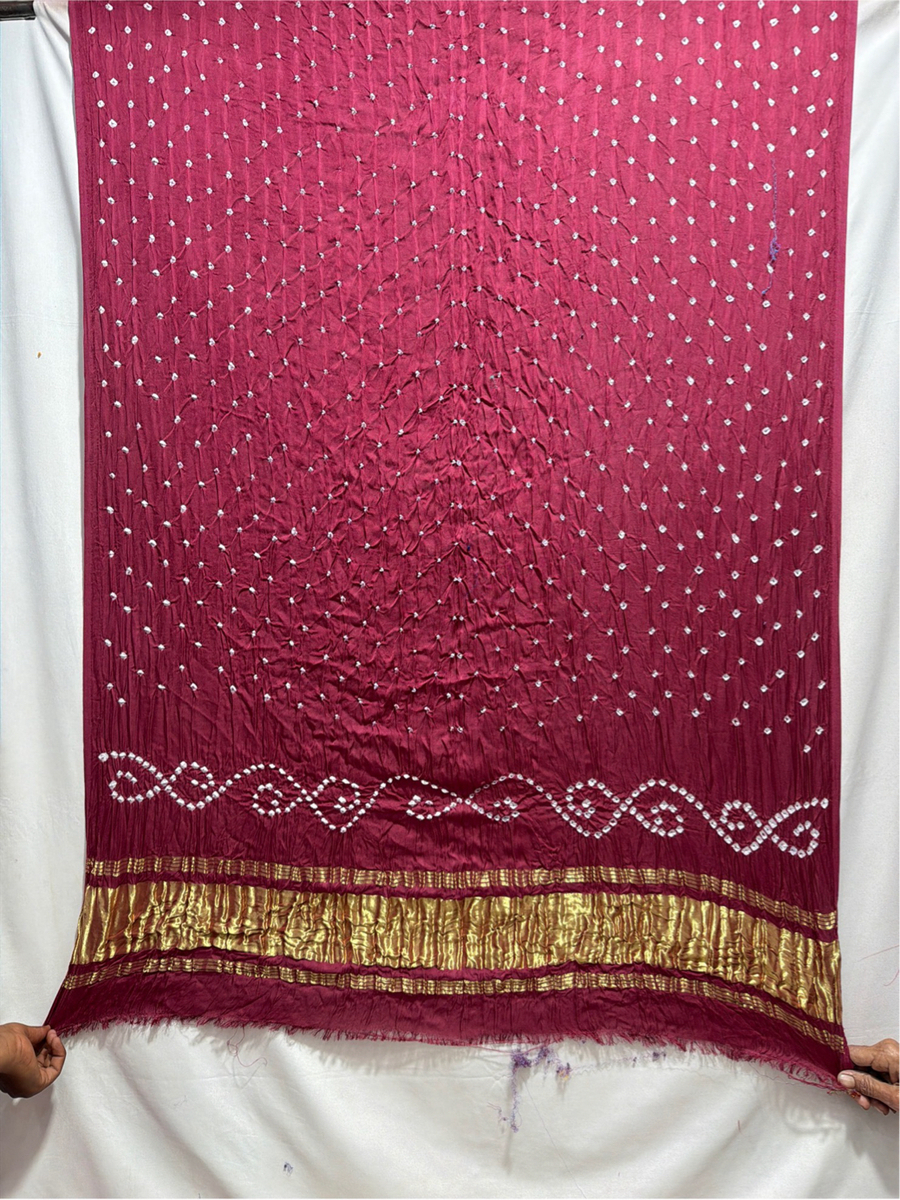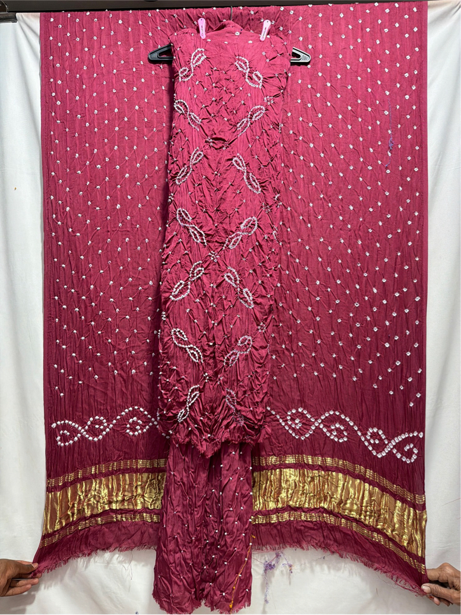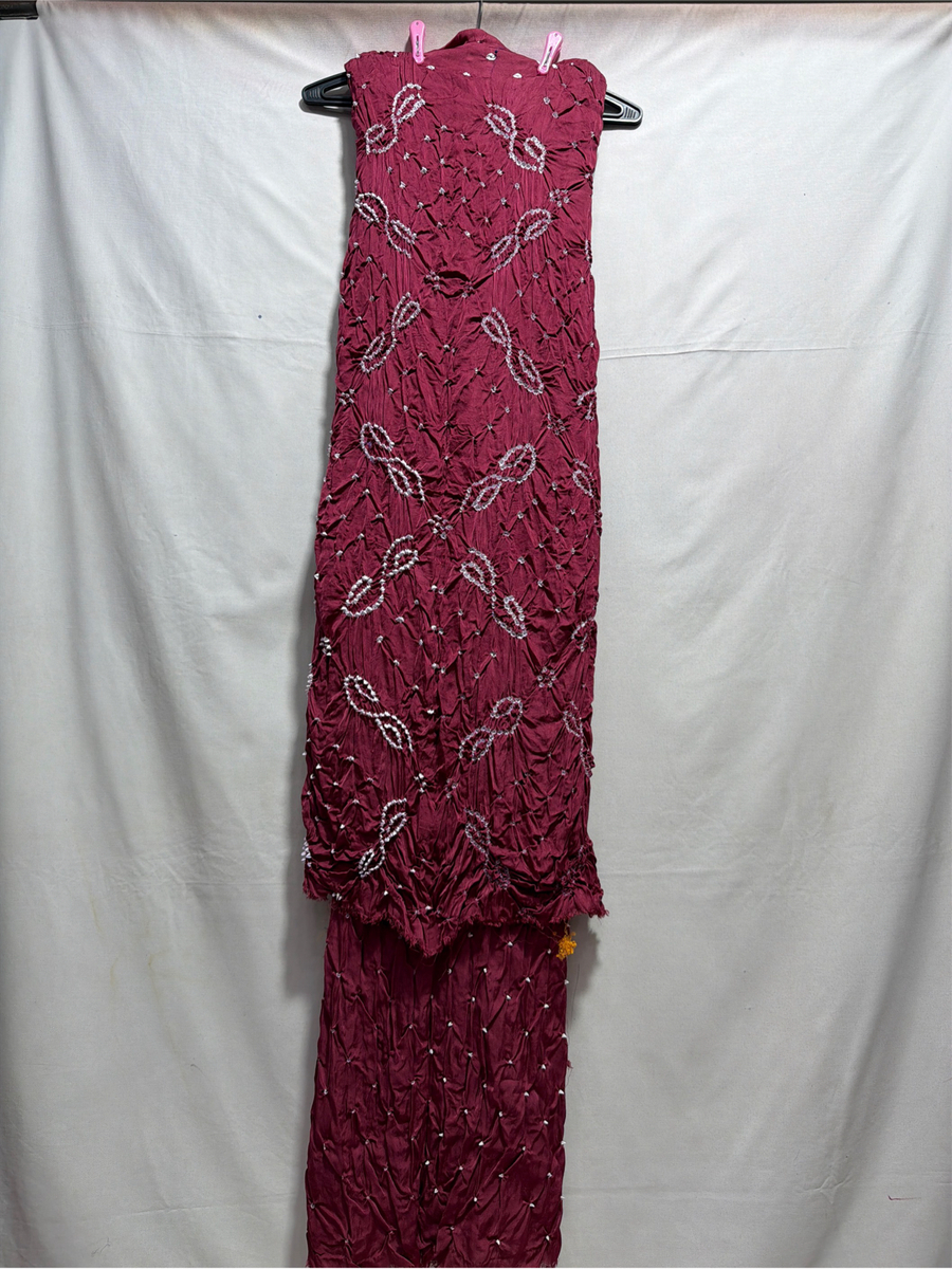 Kala Sanskruti All Over Gajri Color Art Silk Bandhani Dress 2.5 M Each Piece Elegant Traditional Wear Art Silk Dress for Women