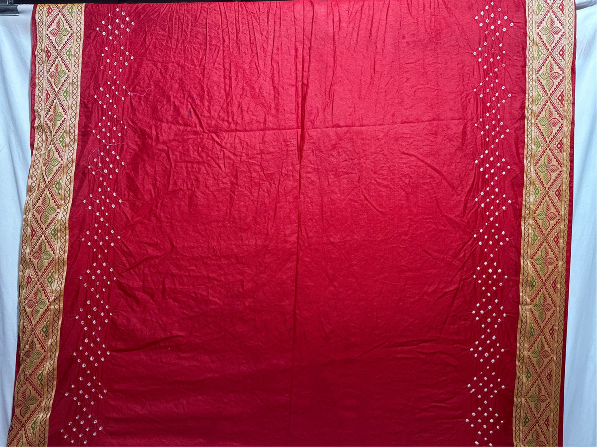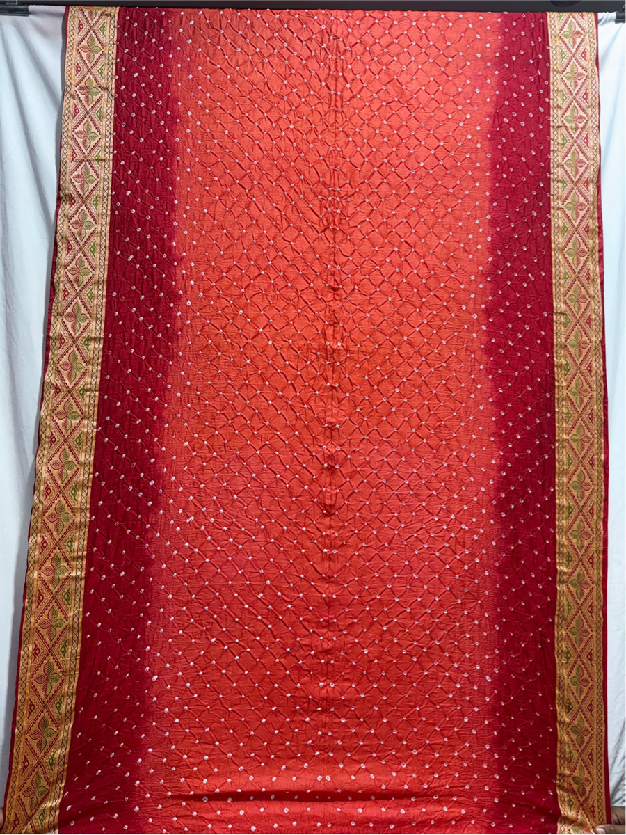 Kala Sanskruti Peach Red Color Dupion Silk Bandhani Saree 6.5M with Blouse Piece Elegant Traditional Wear Bridal Saree for Women