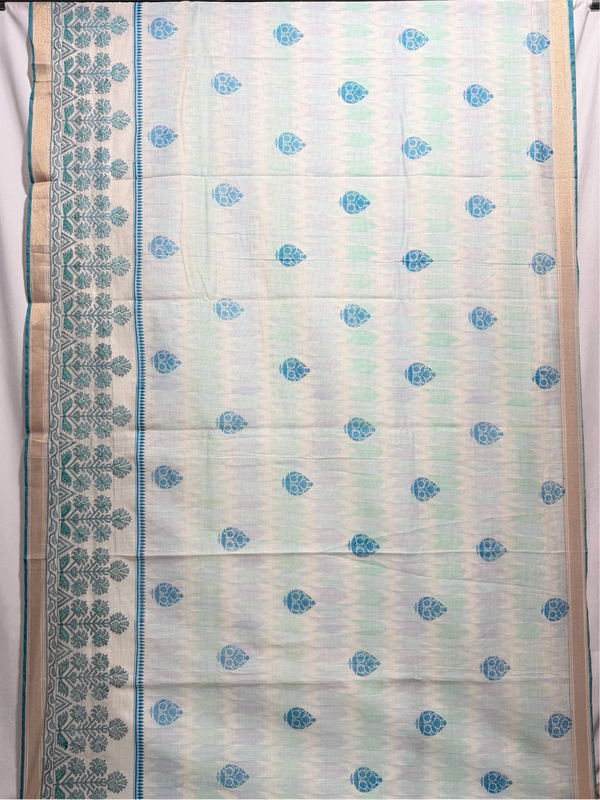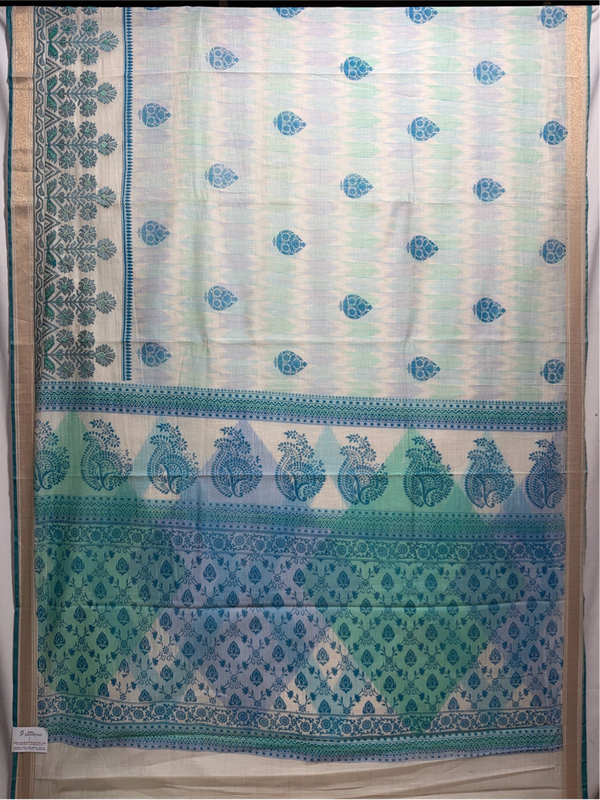 Kala Sanskruti Indigo & Cream Color Cotton Printed Saree 6.5M with Blouse Piece Elegant Traditional Wear Saree for Women