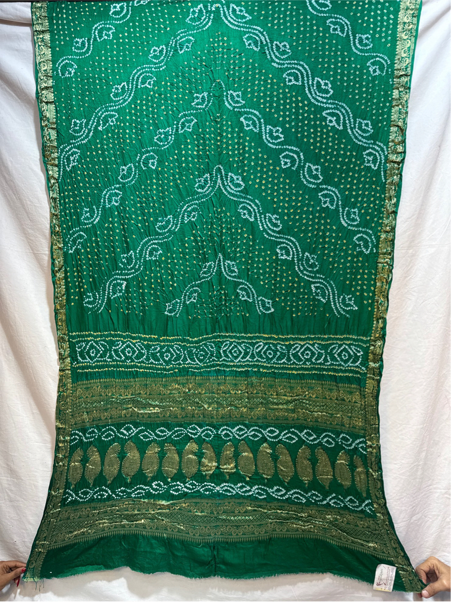 - Material: Made from premium Pure Gaji Silk with exquisite handcrafted Hand Made Bandhani, offering a luxurious blend of tradition and elegance.