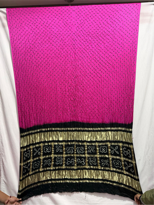 Color & Craft: Beautiful Rani Pink & Black designed with Bandhej Craft & Creation, reflecting artisanal skill.