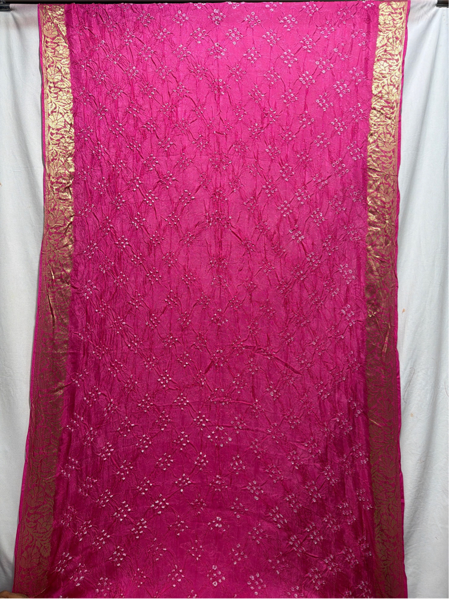- Design: All Over Pink — Hand Made Bandhani motifs across the body.
