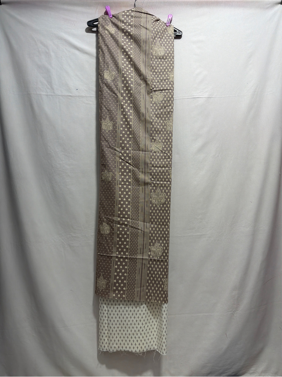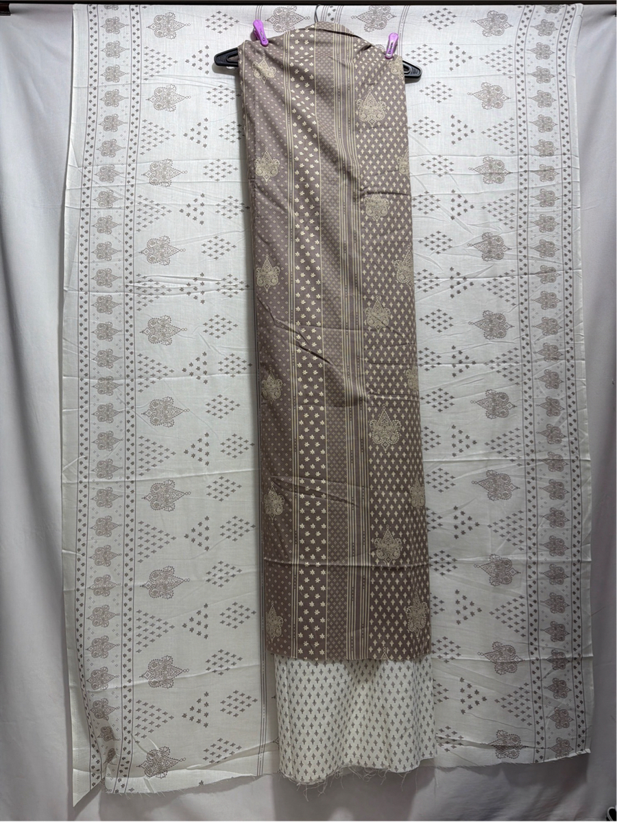 Kala Sanskruti Lighat Chocolate & Whit Color Heavy Cotton Satin Printed Dress 2.5 M (Each Piece) Elegant Traditional Wear Dress Material for Women