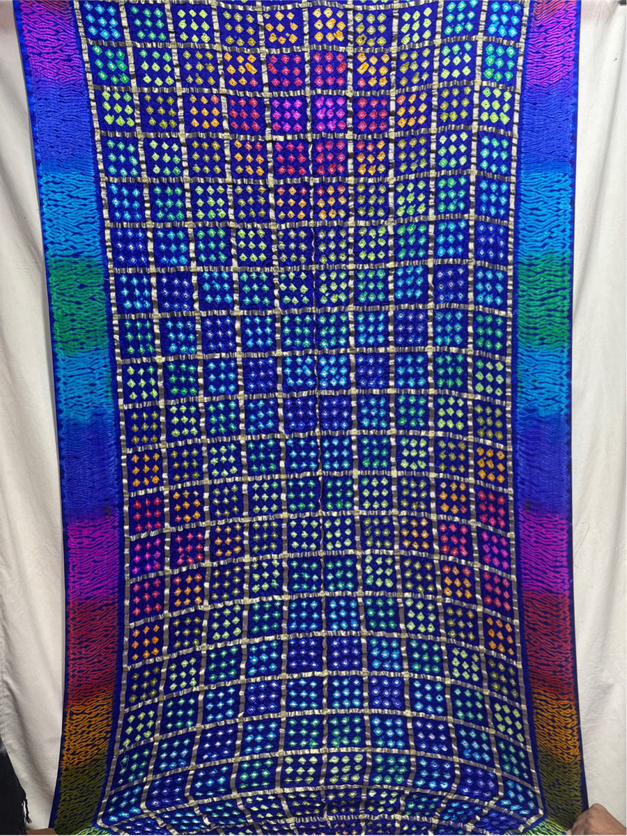 Kala Sanskruti All Over Blue Colour Heavy Cotton Satin Bandhani Dress 2.5 M (Each Piece) Elegant Traditional Wear Dress Material for Women