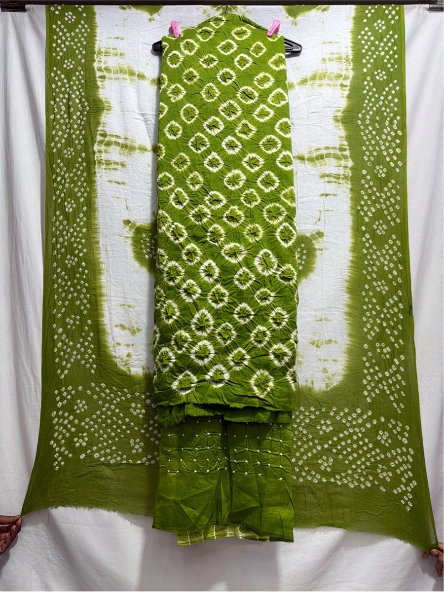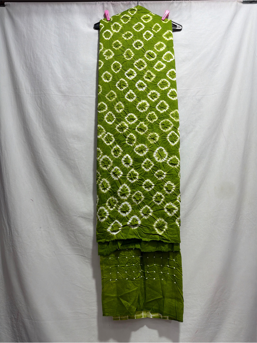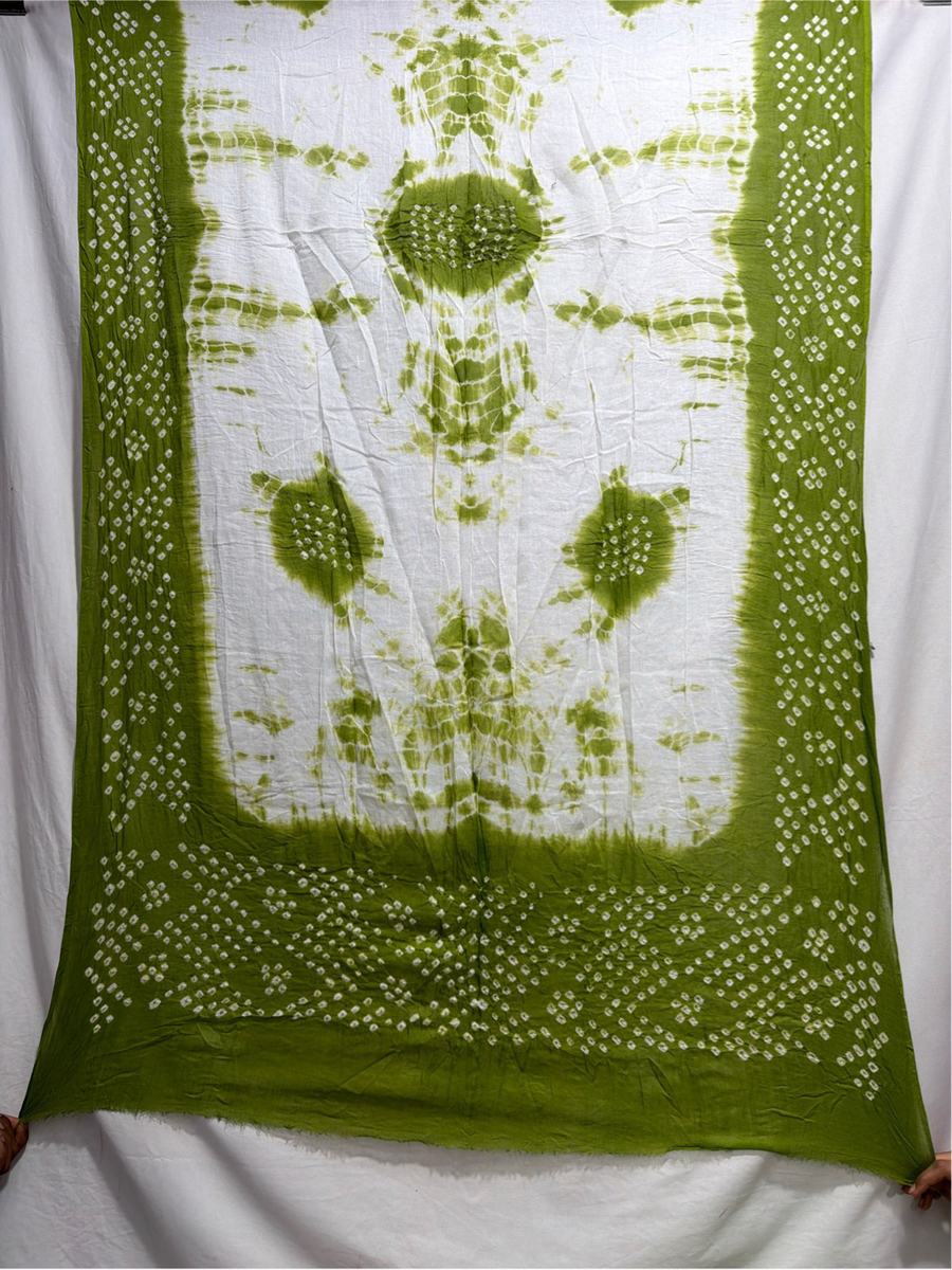 - Color Story: Striking Mahendi & White complemented with Hand Made Bandhani.
