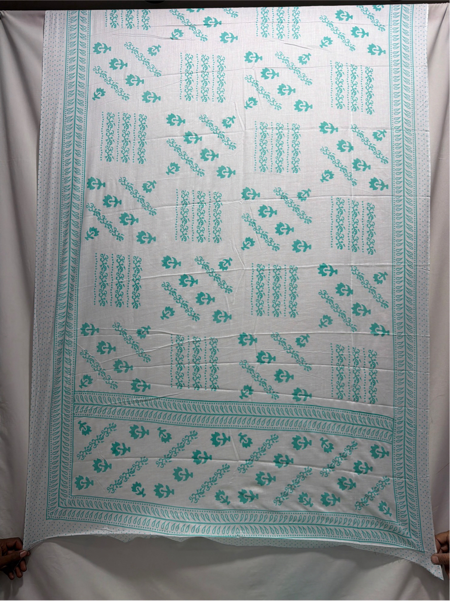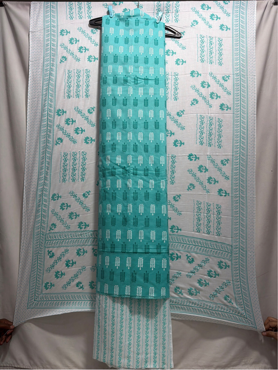 Kala Sanskruti Rama & White Color Heavy Cotton Satin Printed Dress 2.5 M (Each Piece) Elegant Traditional Wear Dress Material for Women