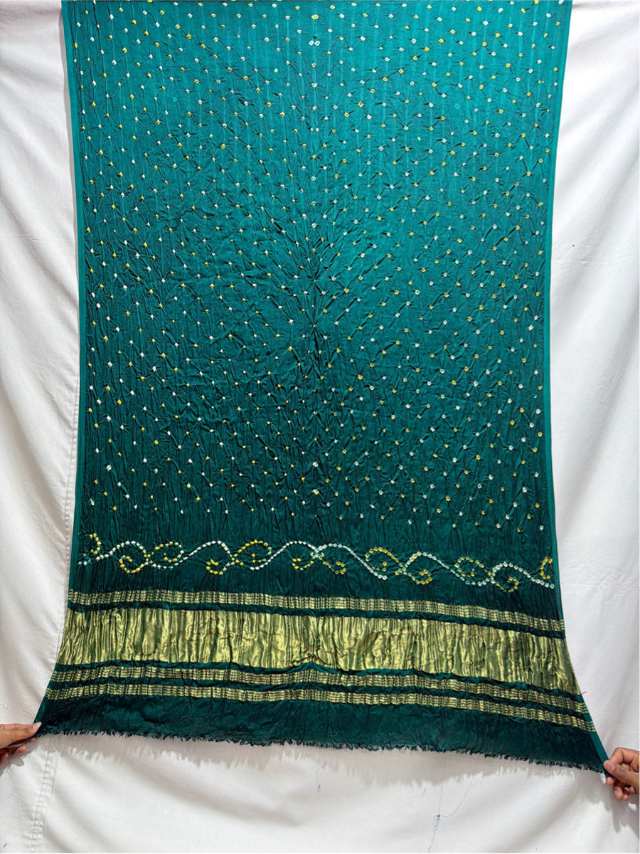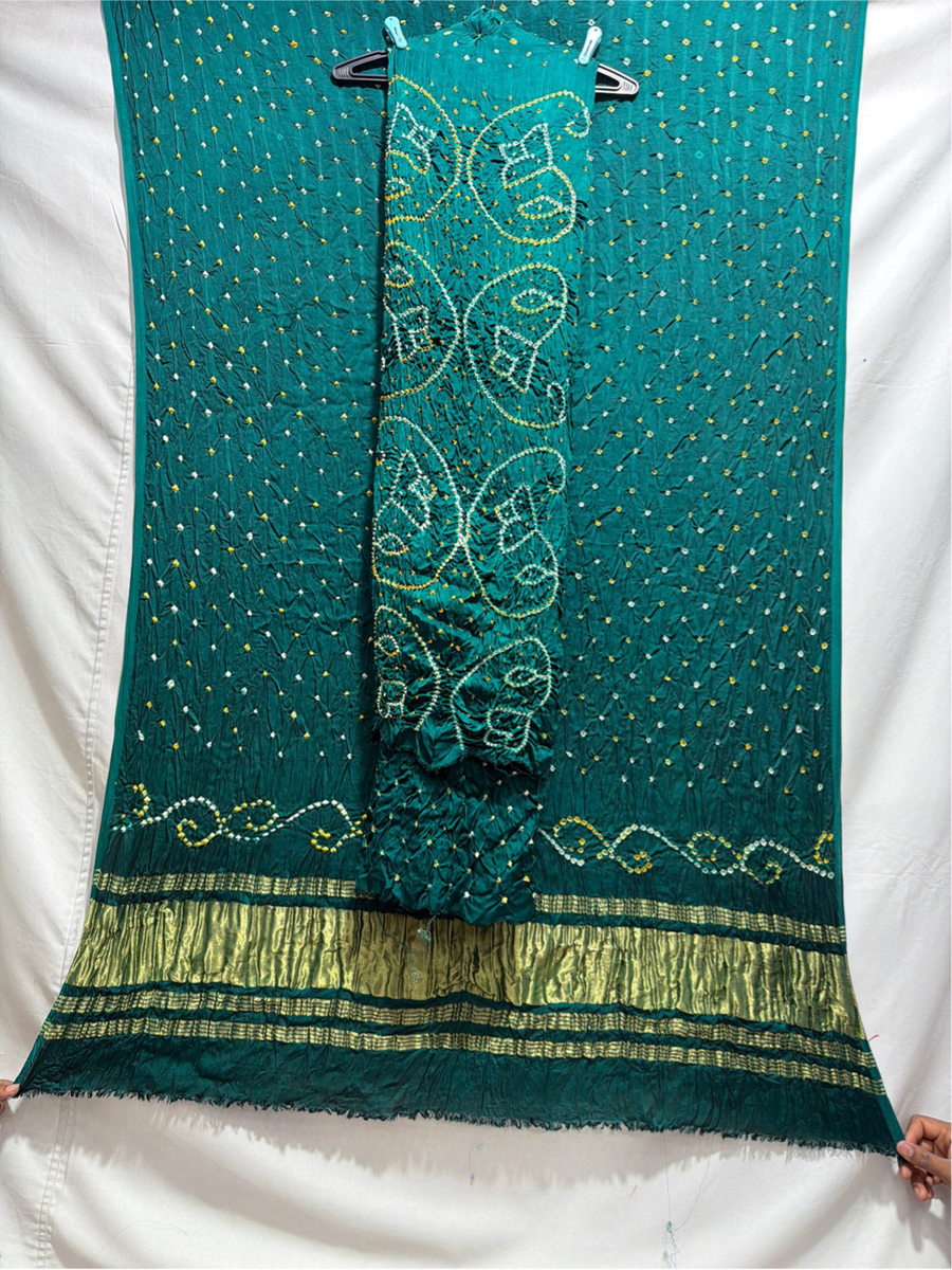 Kala Sanskruti All Over Rama Green Color Art Silk Bandhani Dress 2.5 M Each Piece Elegant Traditional Wear Art Silk Dress for Women
