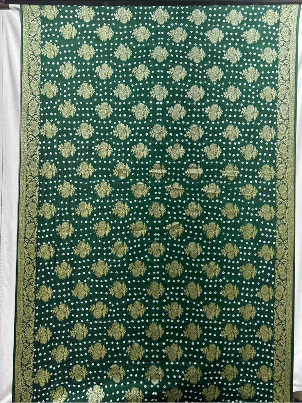 • Design & Shade: All Over Green base enhanced with Hand Made Bandhani, a true example of cultural craftsmanship.