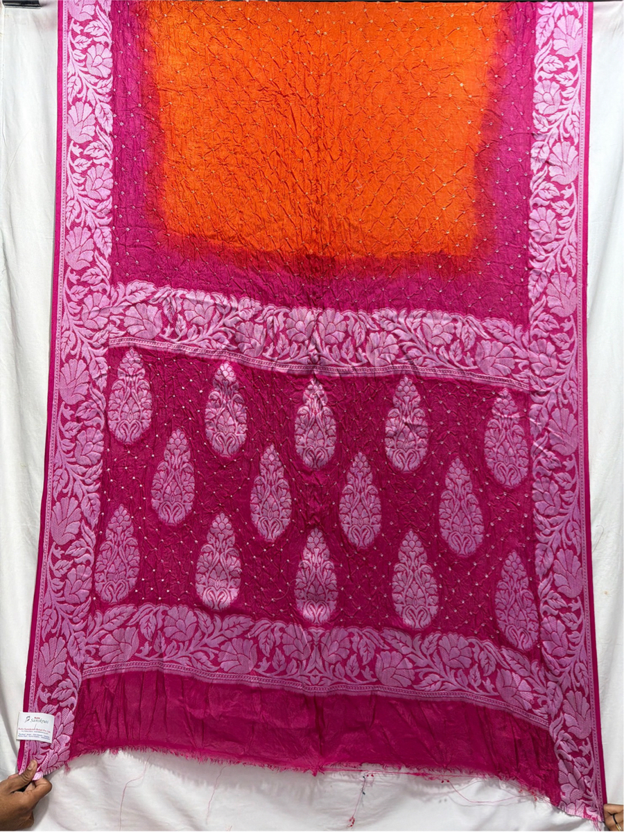 Kala Sanskruti Orange & Pink Color Art Silk Bandhani Saree 6.5M with Blouse Piece Elegant Traditional Wear Bridal Unique Saree for Women