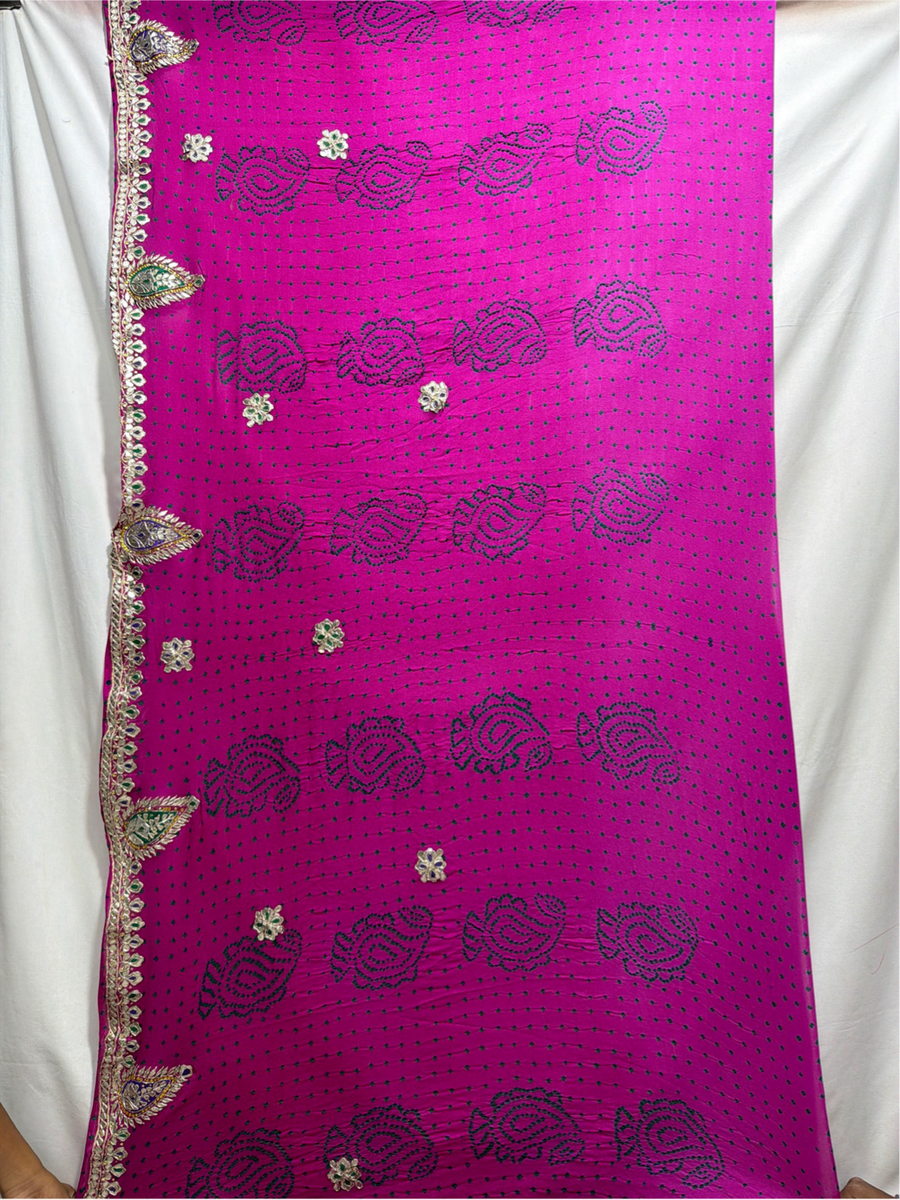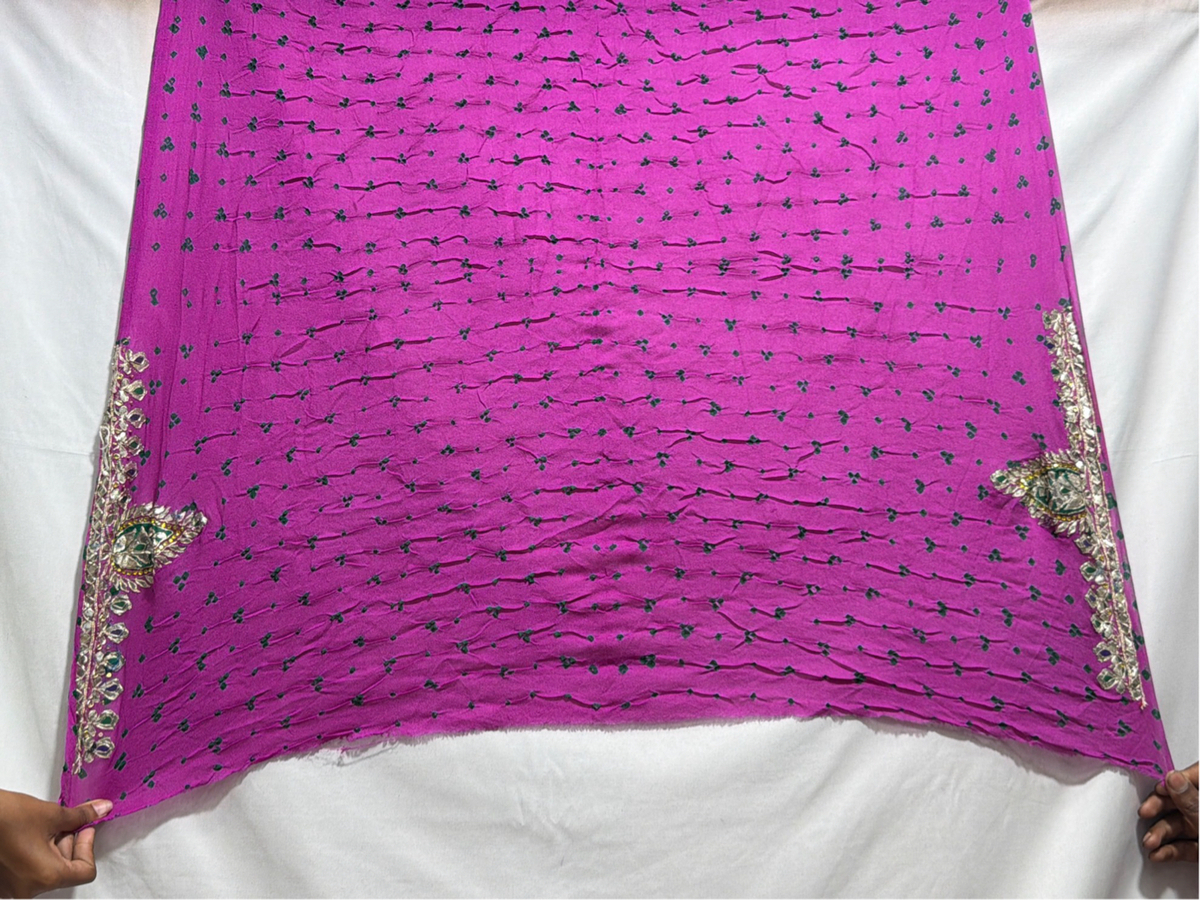 Kala Sanskruti All Over Magenta Color Pure Creap Bandhani Saree With Hand Work 6.5M Elegant Traditional Wear Graceful Handcrafted Artistry For Woman