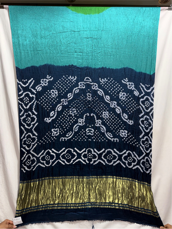 Kala Sanskruti Green Rama Indigo Color Art Silk Bandhani Saree 6.5M with Blouse Piece Elegant Traditional Wear Bridal Unique Saree for Women
