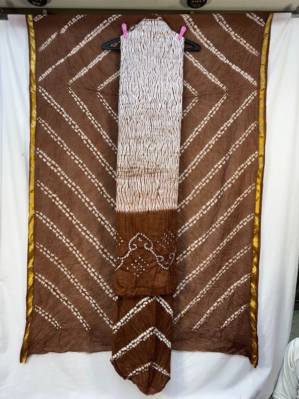 - Color & Craft: Beautiful All Over Chiku designed with Hand Made Bandhani, reflecting artisanal skill.