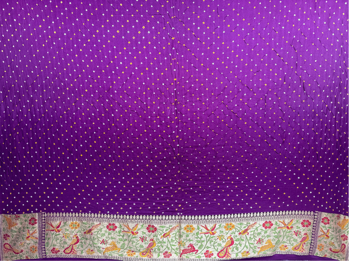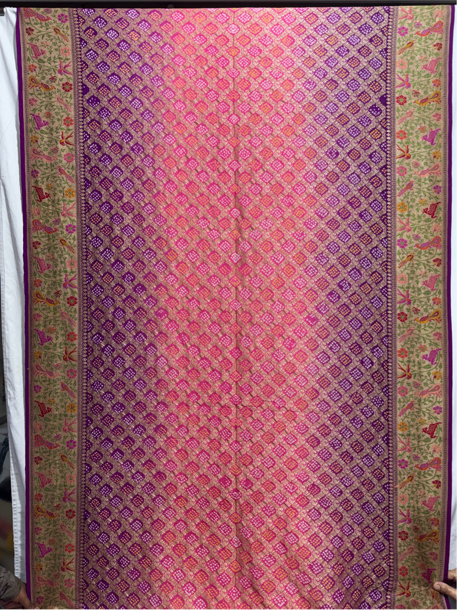 - Handcrafted by skilled artisans, blending Banarasi weaving traditions with the art of Bandhani.