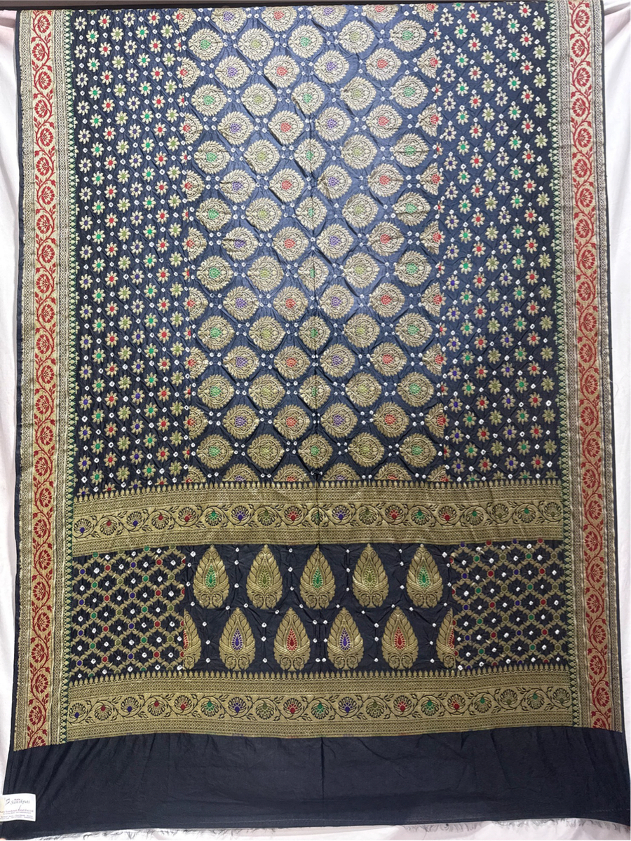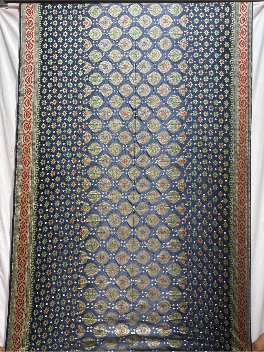 Kala Sanskruti Light Dark Gray Color Dupion Silk Bandhani Saree 6.5M with Blouse Piece Elegant Traditional Wear Bridal Saree for Women