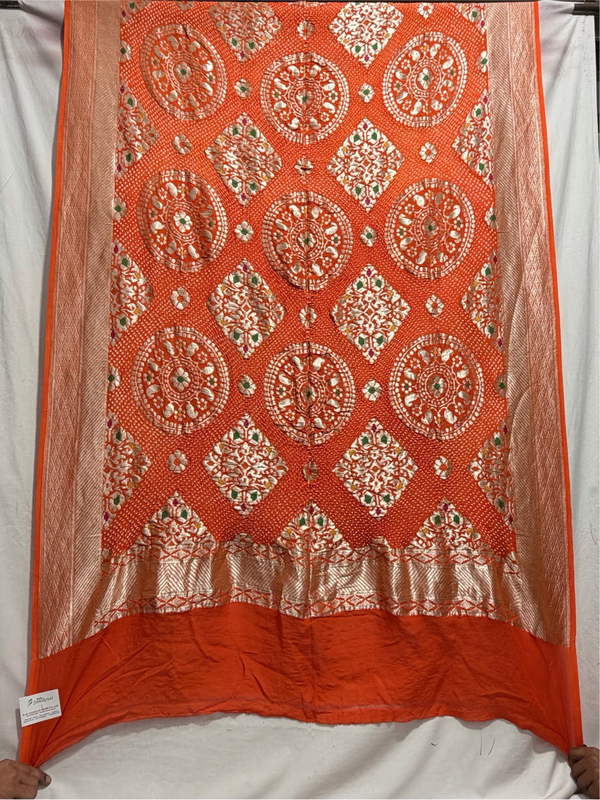 Kala Sanskruti All Over Orenge Color Banarasi Georgette Bandhani Dupatta 2.5 M Elegant Traditional Wear Uniqu