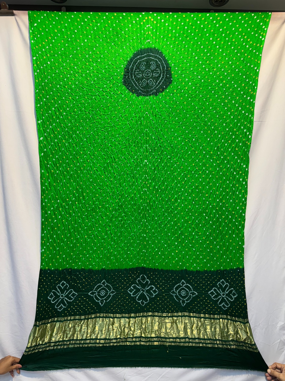 - Color & Craft: Beautiful Linght Dark Green designed with Hand Made Bandhani, reflecting artisanal skill.