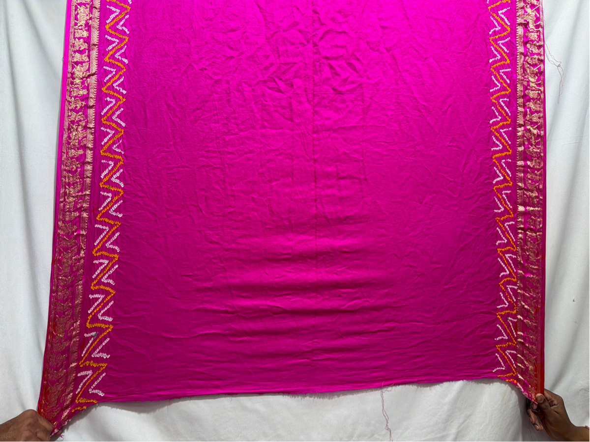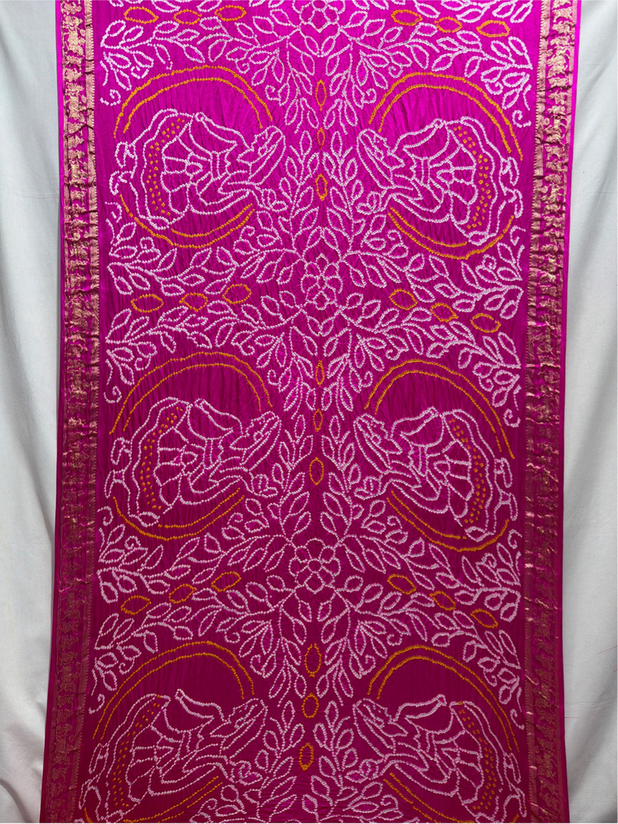 Kala Sanskruti All Over Rani Pink Color Pure Gaji Silk Bandhani Saree 6.5M with Blouse Piece Elegant Traditional Wear Saree for Women