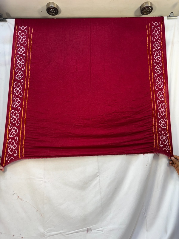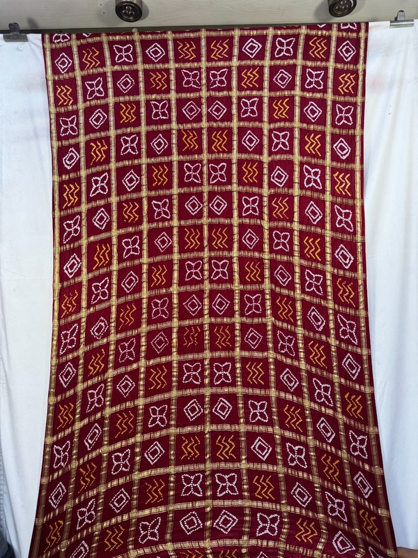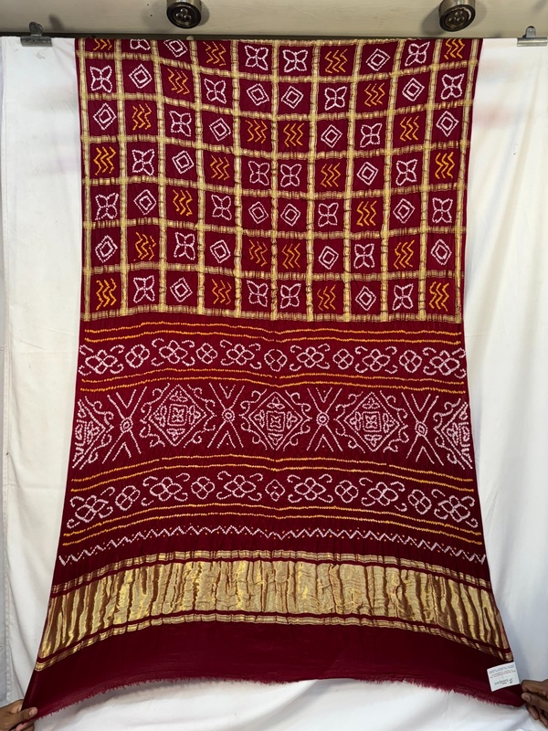 - Color Story: Striking All Over Maroon complemented with Hand Made Bandhani.