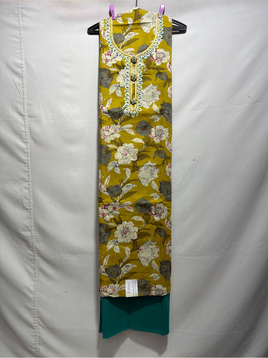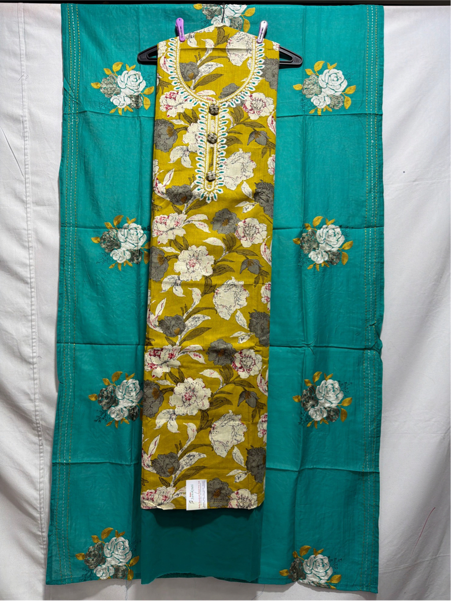 Kala Sanskruti Methi Yellow & Rama Color Heavy Cotton Satin Bandhani Dress 2.5 M (Each Piece) Elegant Traditional Wear Dress Material for Women