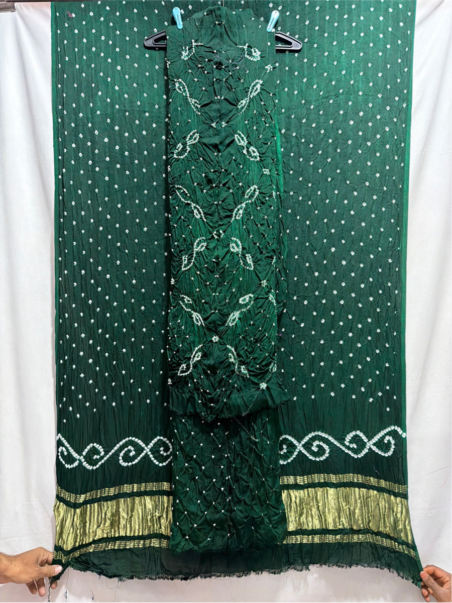 Kala Sanskruti All Over Green Color Art Silk Bandhani Dress 2.5 M Each Piece Elegant Traditional Wear Art Silk Dress for Women