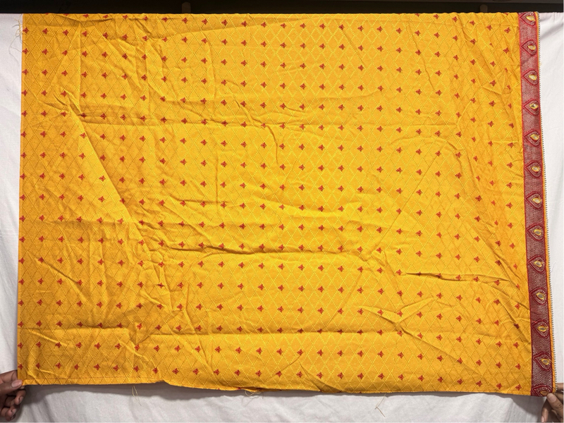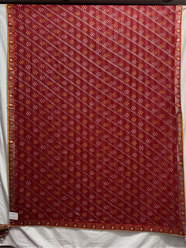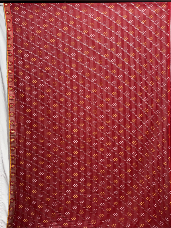 - Design: Maroon & Yellow Hand Made Bandhani motifs across the body.