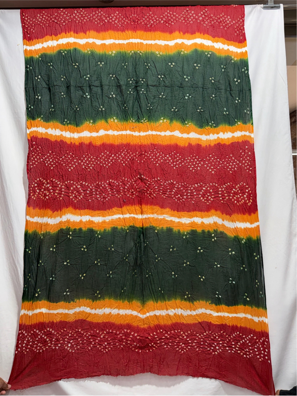 Kala Sanskruti Red & Green Color Heavy Cotton Satin Bandhani Dress 2.5 M (Each Piece) Elegant Traditional Wear Dress Material for Women
