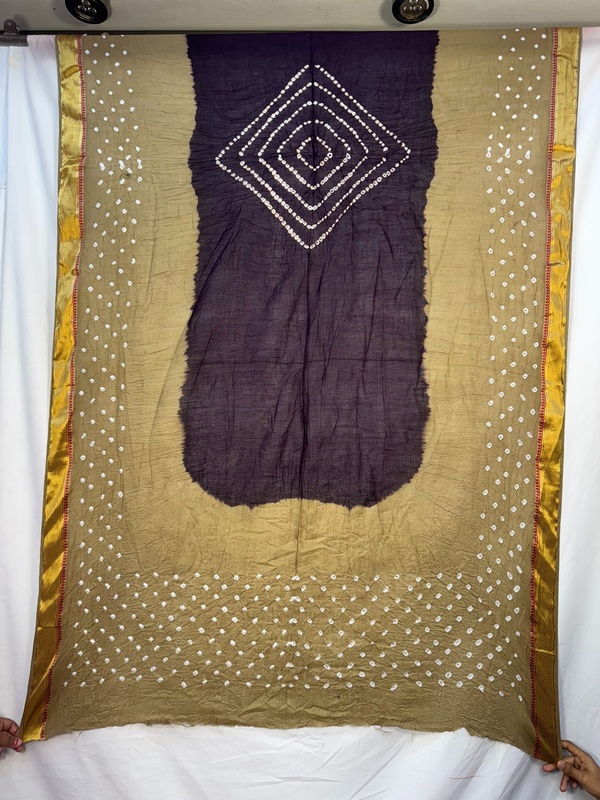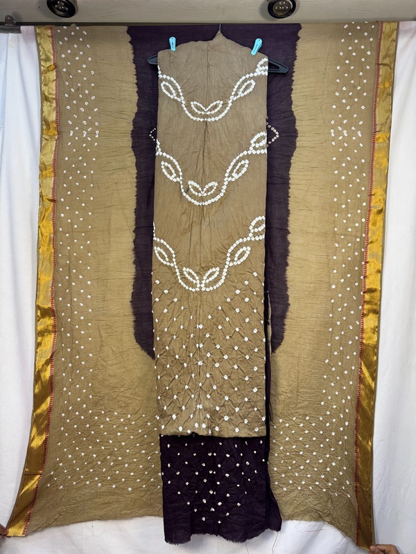 - Color & Craft: Beautiful Chiku & Wine designed with Hand Made Bandhani, reflecting artisanal skill.