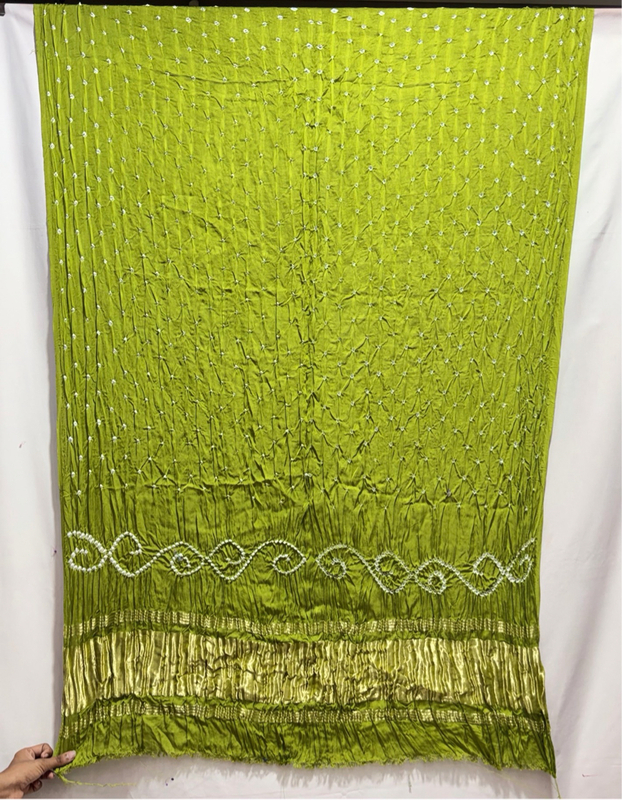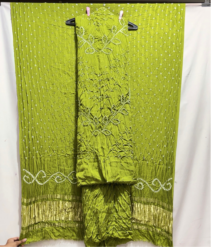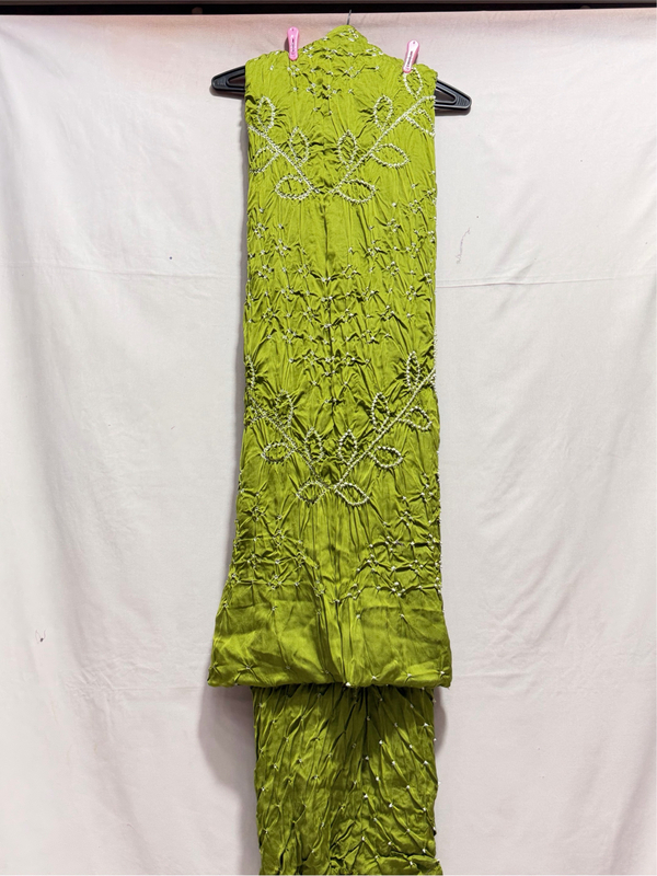 Kala Sanskruti All Over Parrot Green Color Art Silk Bandhani Dress 2.5 M Each Piece Elegant Traditional Wear Art Silk Dress for Women