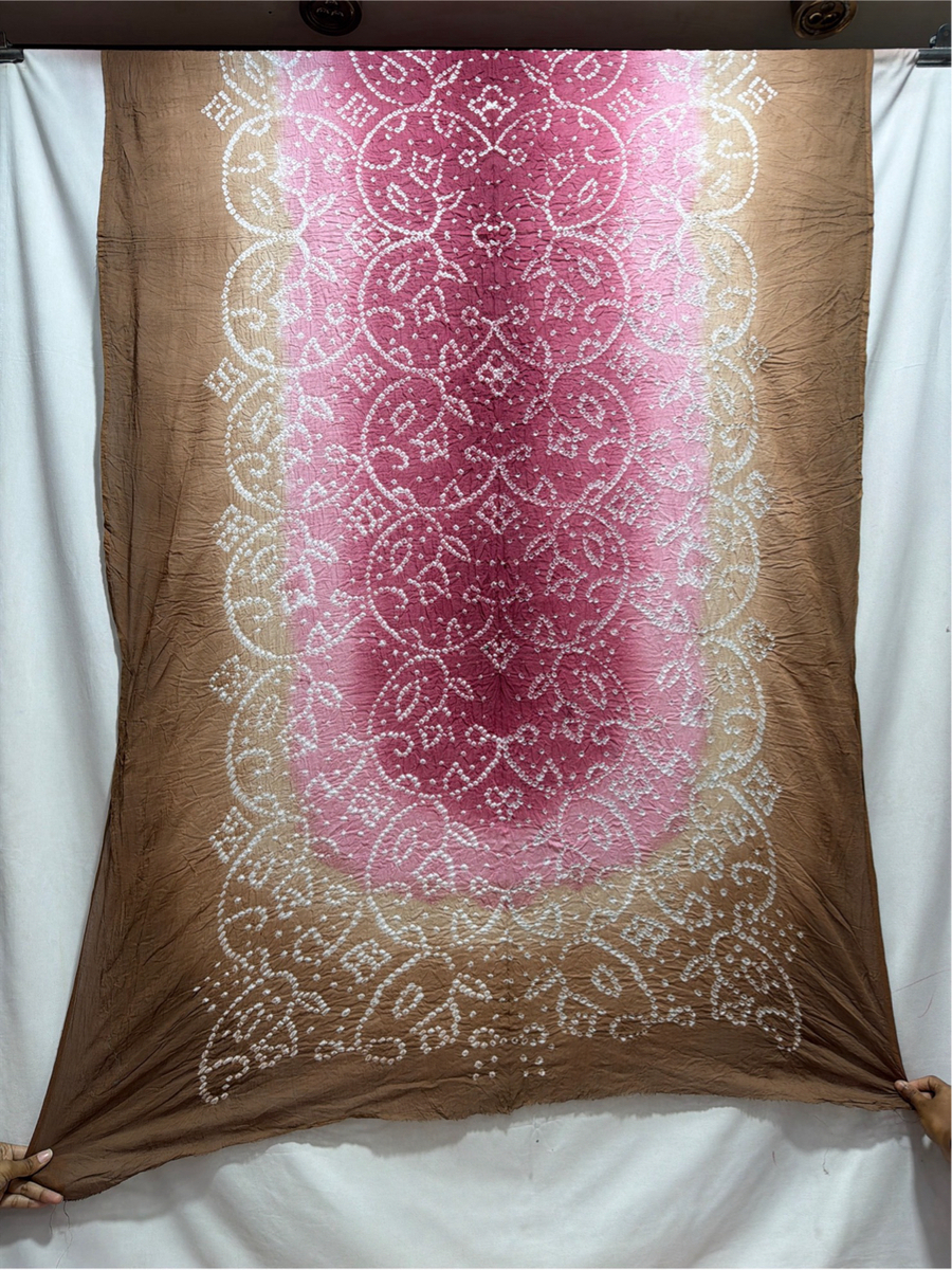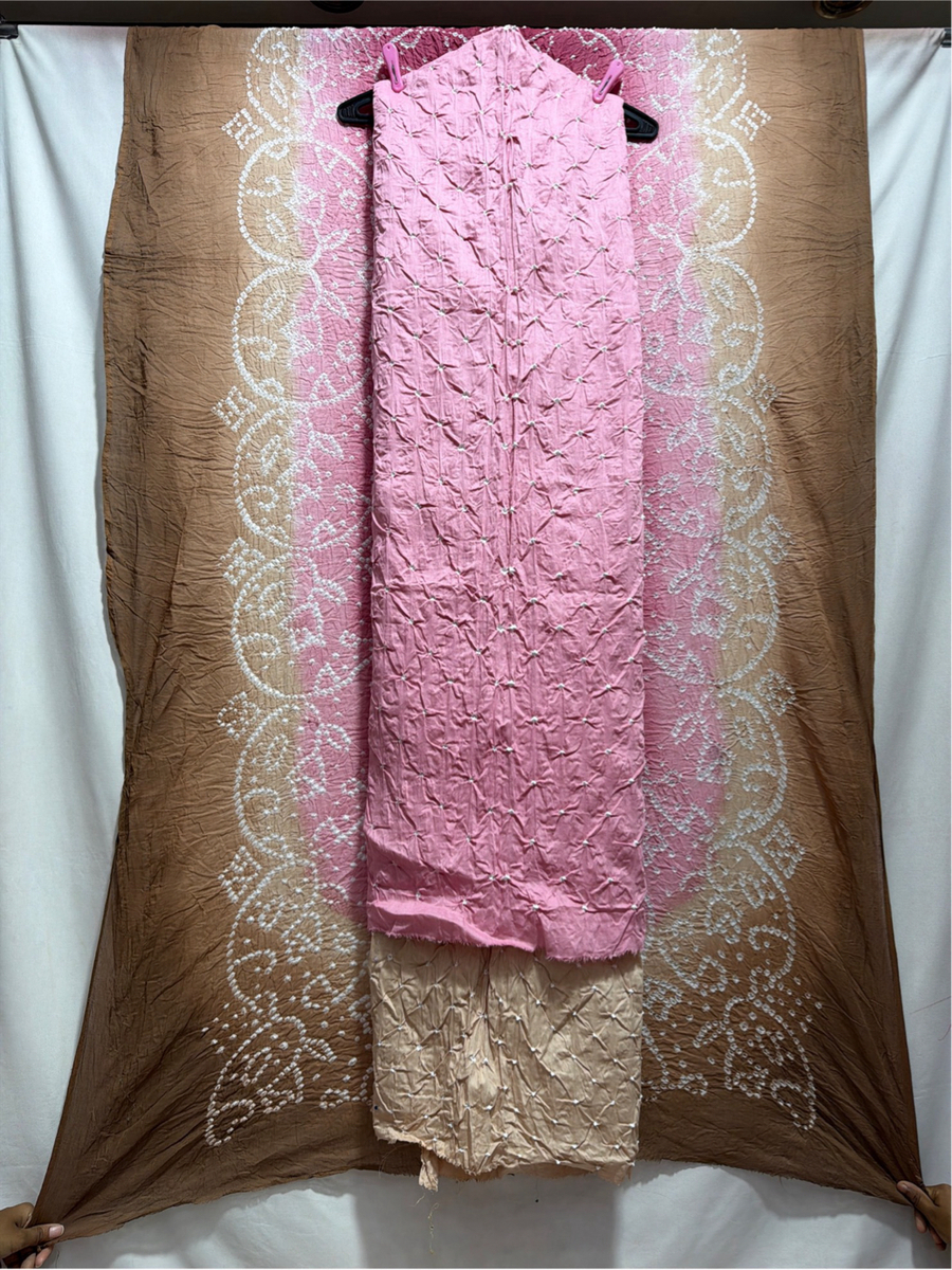 Kala Sanskruti Gajri & Chiku Color Heavy Cotton Satin Bandhani Dress 2.5 M (Each Piece) Elegant Traditional Wear Dress Material for Women