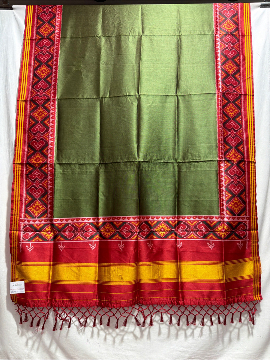 Kala Sanskruti Mahendi & Red Color Art Silk Patola Dupatta 2.5 M Elegant Traditional Wear Unique Dupatta for Women