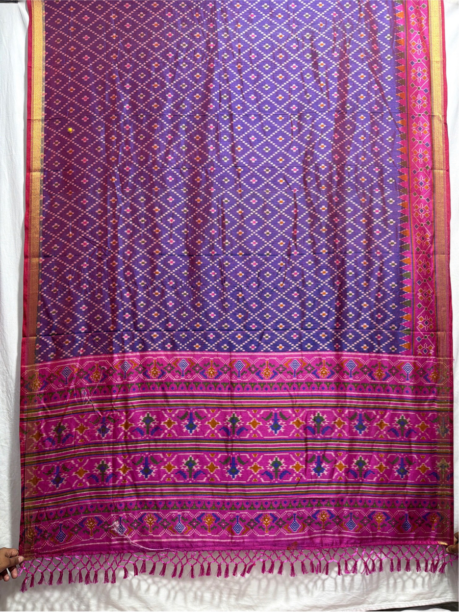 Kala Sanskruti Rani Pink & Purpal Color Art Silk Patola Dress 2.5 M Each Piece Elegant Traditional Wear Art Silk Dress for Women