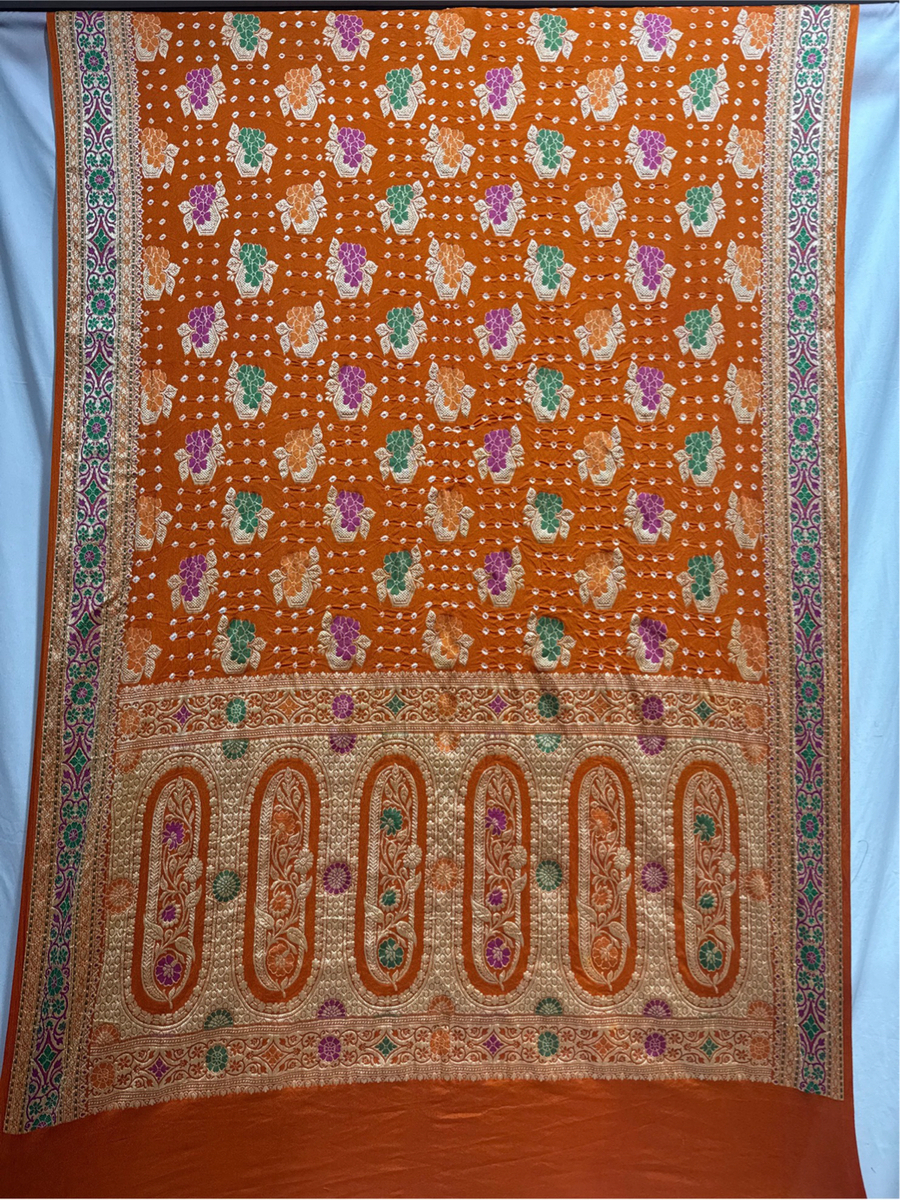 Kala Sanskruti All Over Mustard Color Dupion Silk Bandhani Saree 6.5M with Blouse Piece Elegant Traditional Wear Bridal Saree for Women