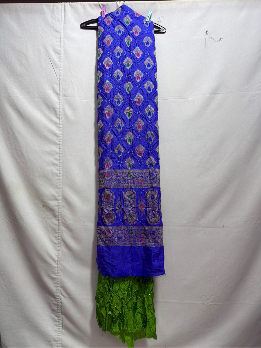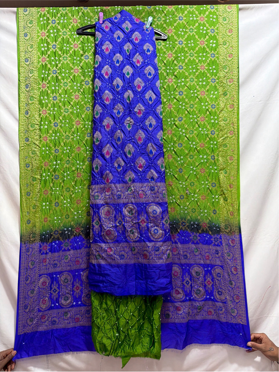 Kala Sanskruti Blue & Parrot Green Color Dupion Silk Bandhani Dress 2.5 M (Each Piece) Elegant Traditional Wear Dress for Women