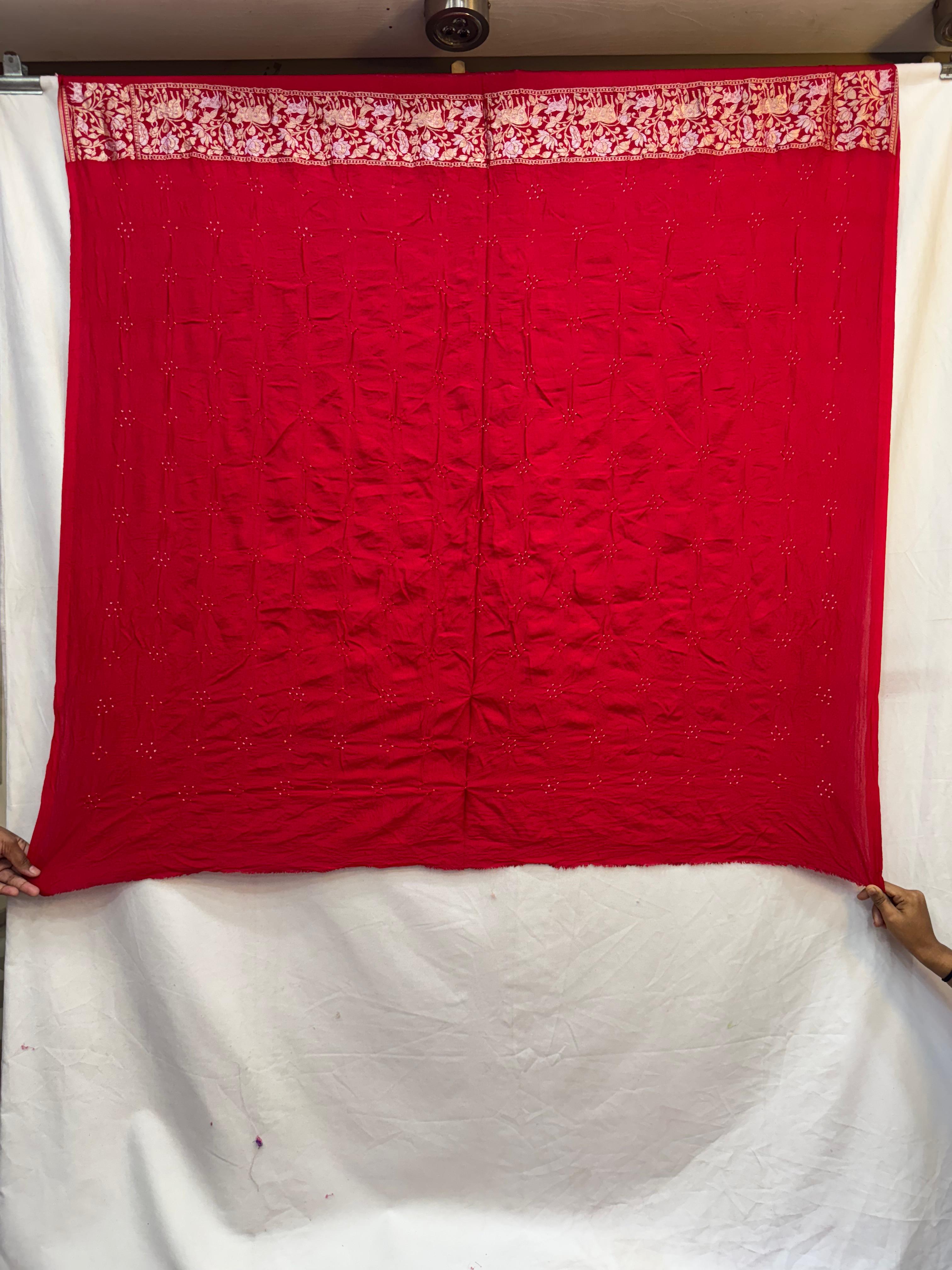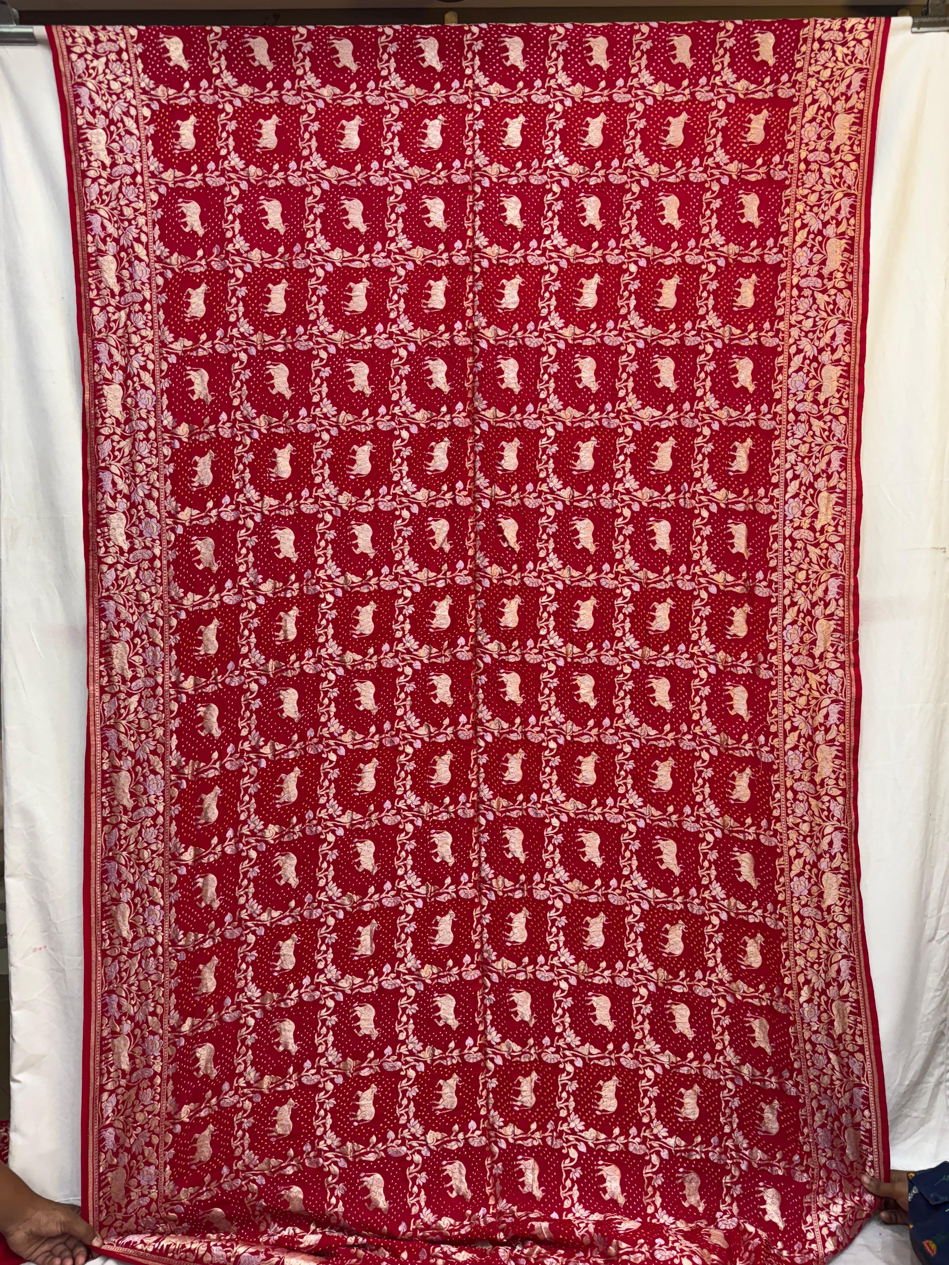Kala Sanskruti Red Banarasi Georgette Bandhani Saree – 6.5M Saree with Blouse Piece – Party, Wedding & Festive Wear Sare